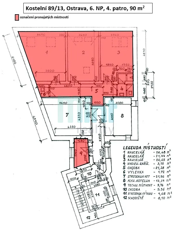 Nabízíme Vám k pronájmu prostorný byt o velikosti 3 + kk a celkové podlahové ploše 90 m², nacházející se v samotném centru Ostravy.