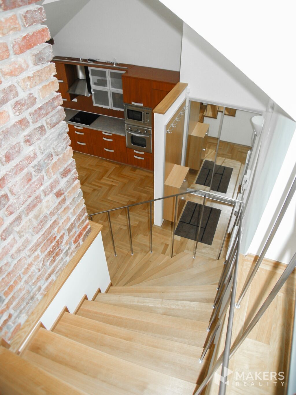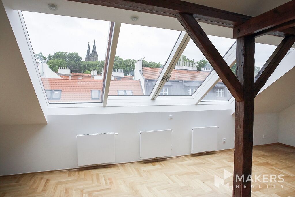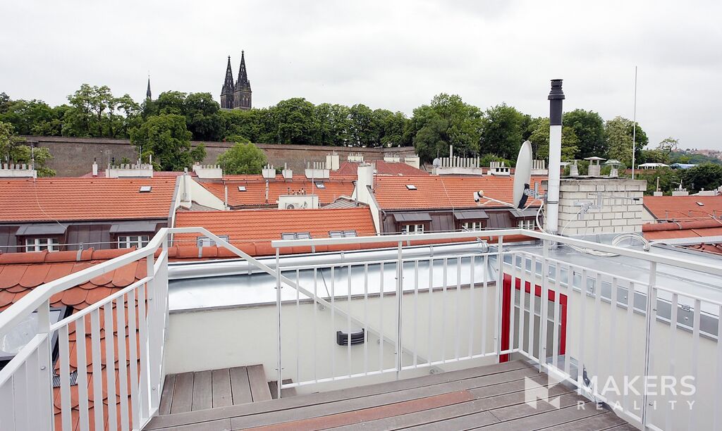 Nabízíme k dlouhodobému pronajmu krásný světlý mezonetový byt 3+kk o celkové ploše 88m2 + 9m2 terasa na střeše domu, který se nachází v 5. podlaží v nově zrekonstruovaném domě pod Vyšehradem, kousek od Vltavy a jednu stanici tramvaje od metra Palackého náměstí.