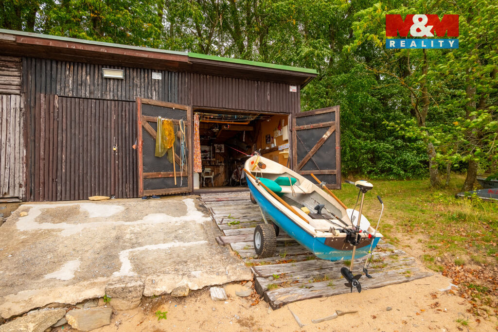 Prodej exkluzivní rekreační chaty u Lipna, vzdálené pouhých 30 metrů od písečné pláže. Tato dobře udržovaná nemovitost je ideální pro rodinnou rekreaci i komerční pronájem. Na pozemku se nachází i samostatný zahradní domek, který slouží jako plnohodnotné extra ubytování pro hosty, a dále praktická kůlna na nářadí nebo dílnu. Chata je ihned k užívání. Lokalita nabízí přímý přístup k vodě a skvělé zázemí pro všechny aktivity. Jedinečná příležitost pro ty, kteří hledají maximální komfort a bezprostřední blízkost Lipna s kompletním zázemím. Možnost odkupu loděnice přímo na pláži, vybavená elektřinou a navijákem na loď, což je obrovská výhoda pro vodní sporty a milovníky rybaření. Neváhejte a domluvte si prohlídku!