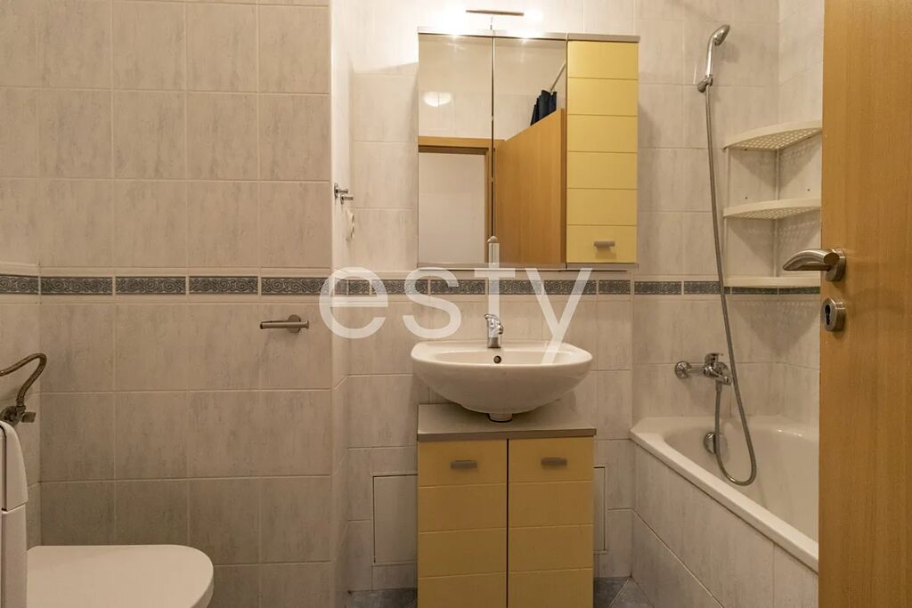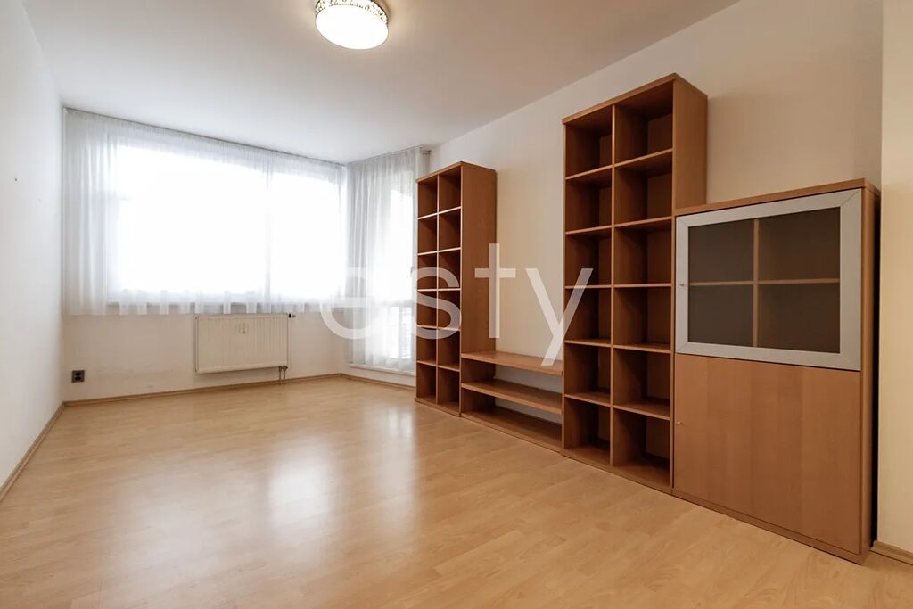 Obývací pokoj s kuchyňským koutem (24m²) je částečně vybaven TV stolkem a stěnou se skříňkami, kuchyňskou linkou se spotřebiči (mikrovlnná trouba, nová myčka, trouba zn. Whirlpool, lednička Electrolux, digestoř, sklokeramická varná deska). Z této místnosti je přístup na prostornou lodžii (5,1m²). Součástí bytu je i sklep (2,3 m²).