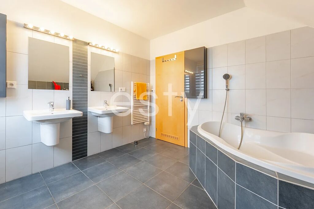 Zde Vás osloví otevřená část, která je využívána jako pracovna s velkými střešními okny, která celou plochu pracovny perfektně prosvětlí. Jedna z tří ložnic poskytuje nádherný výhled do údolí a Brdské hřebeny. Ložnice jsou samostatné s navazující menší místností, která slouží jako úložný prostor. Nechybí ani větší koupelna s rohovou vanou a toaletou.