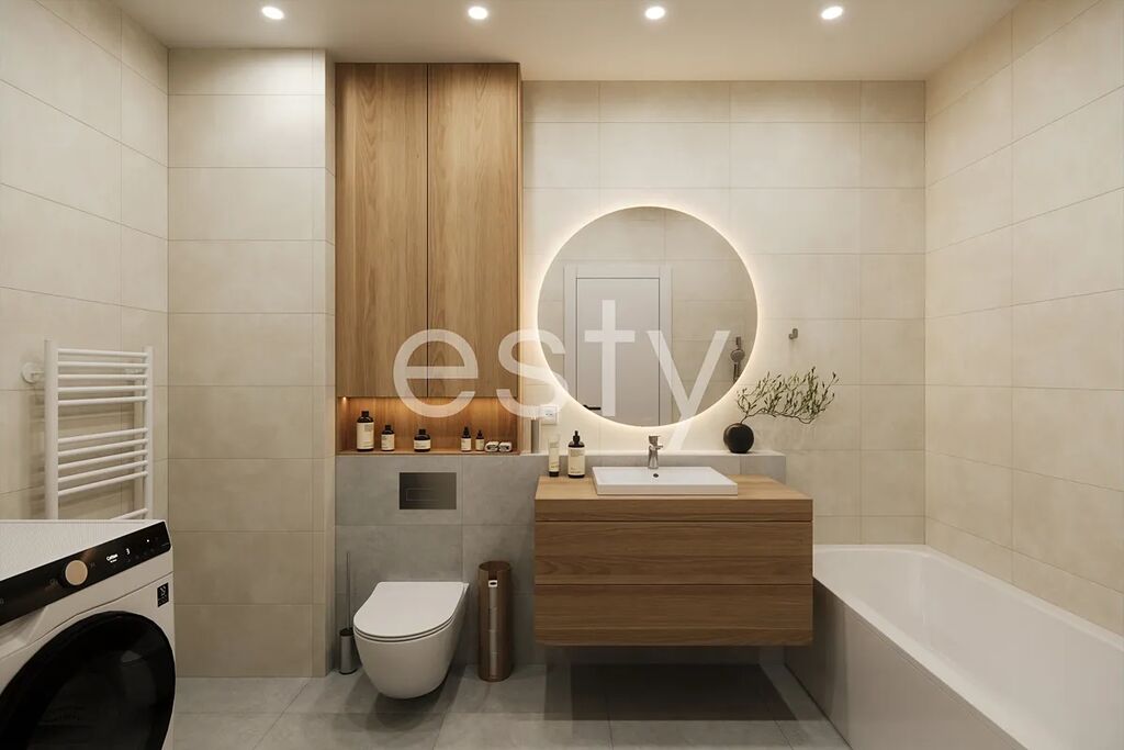 Byt zaujme vysokými stropy, které umocňují vzdušnost interiéru, a velkoformátovými okny s jižní orientací, díky nimž je prostor krásně prosvětlený. Součástí bytu je i útulná lodžie, ideální k ranní kávě nebo večernímu odpočinku.