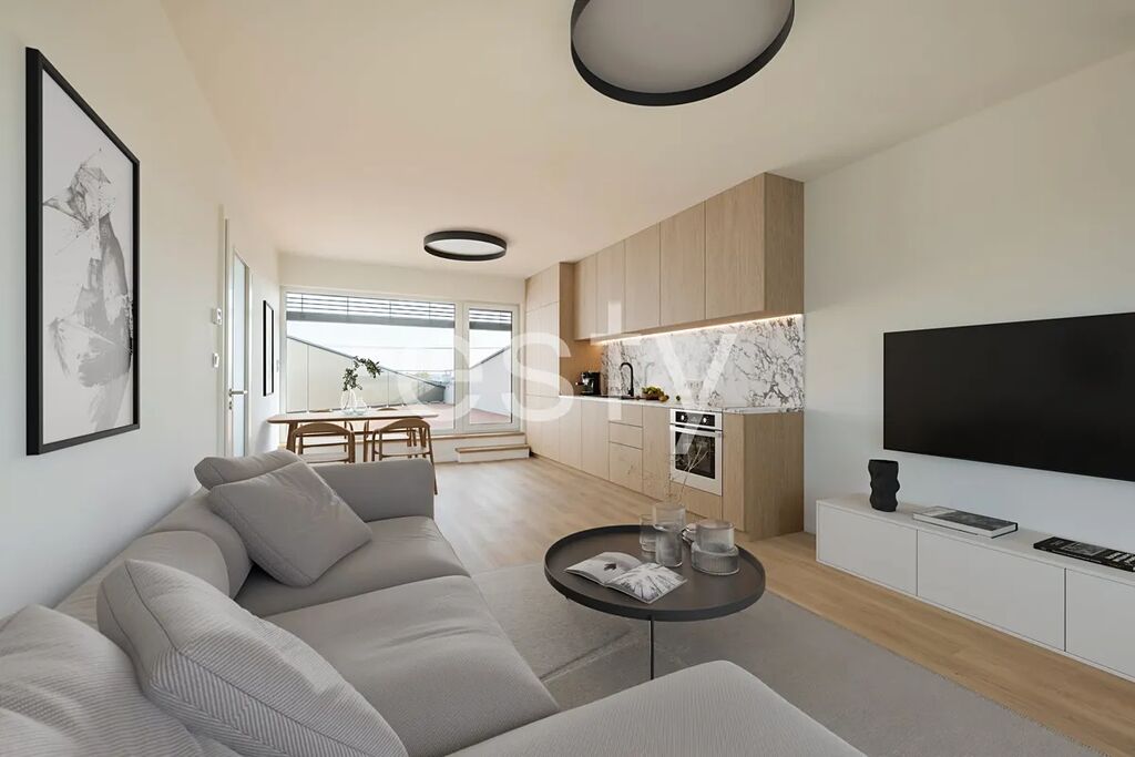 S plochou 73,1 m2 je ideální kombinací komfortu a funkčnosti. Obývací pokoj o velikosti 27,23 m2 je perfektní pro relaxaci a společenské aktivity, jedna ložnice o velikosti 12,57 m2 poskytne klidné útočiště pro nerušený odpočinek a další navazující pokoj 12,11 m2. Součástí bytu je také prostorná chodba (11,28 m2), koupelna (3,9 m2), samostatné WC (3,39 m2) a terasa (45,55 m2). K bytu náleží sklep (2,7 m2).