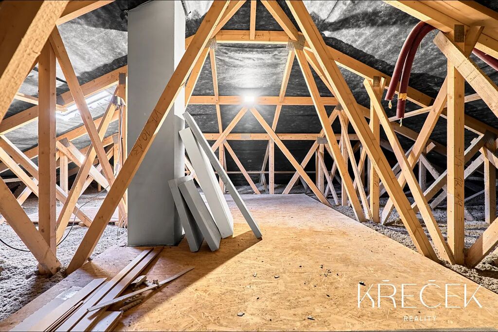 Na pozemku je retenční nádrž 12 m³, před domem jímka 12 m³ s možností budoucí úpravy na domácí čističku odpadních vod. Součástí domu je pochozí půdní prostor vhodný ke skladování a pohodlné parkování přímo před domem.
