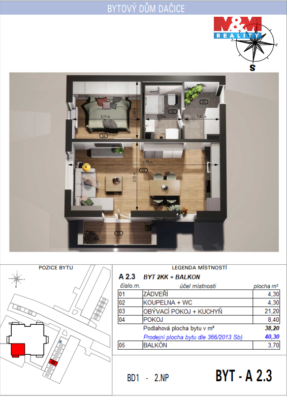 Připravujeme prostorný byt 2+kk (40,3 m²) v moderní energeticky úsporné dřevostavbě na Červeném vrchu.