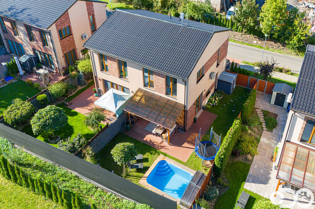Nemovitost stojí na pozemku o výměře 320 m², který nabízí dostatek prostoru pro relaxaci, Z obývacího pokoje je řešen vstup do pergoly a následně na zahradu o výměře cca 200 m2, jejiž prostor zajistí dostatek klidu i využití pro děti. Příslušenstvím je bazén 3x4 m s krytím a pískovou filtracím. Před domem (pozemek patří k domu) je možnost pohodlného parkování pro dvě vozidla. Samozřejmostí je napojení na veškeré sítě.