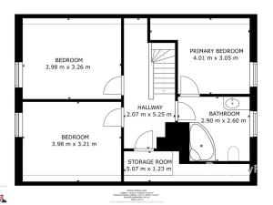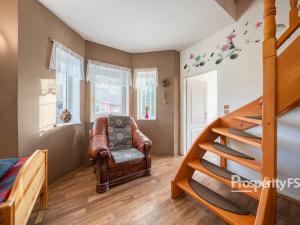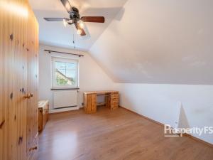 V patře jsou tři ložnice, koupelna s vanou a praktická komora. Nad obytnou částí je půda, kterou lze využít jako úložný prostor.
