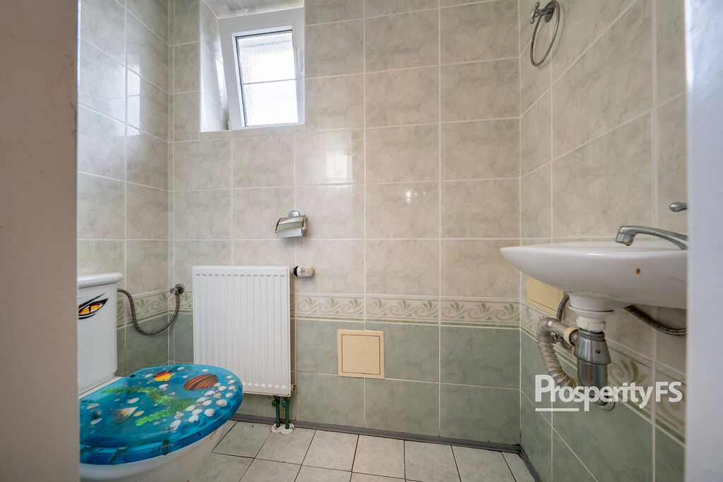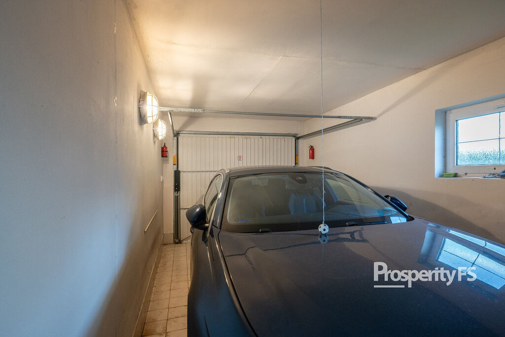 V přízemí vás přivítá prostorný obývací pokoj s krbem, který navazuje na krytou terasu s vířivkou – ideální pro celoroční relax. Kuchyně je samostatná a prakticky řešená. Dále zde najdete koupelnu se sprchovým koutem a vstup do garáže s dílnou.