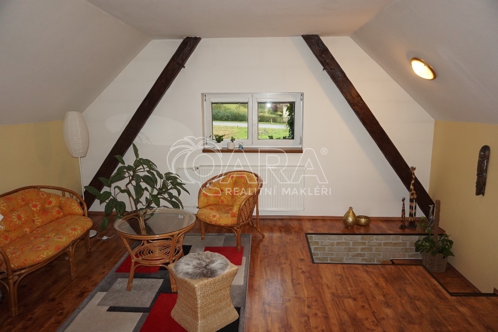 Nabízíme k prodeji rodinný dům se dvěma bytovými jednotkami 3+1 a 1+1 s garáží, zahradou a mnoha dalšími prostorami v klidné obci Stašov. Jižní část domu je po rekonstrukci, určená k okamžitému užívání bez dalších investic. Přes vstupní předsíňku se vchází do centrální chodby se vstupy do kuchyně, WC, koupelny a dále do kotelny s moderním kotlem na peletky, na kterou ještě navazuje spižírna. Z kuchyně s jídelní částí je možno pokračovat do prostorného obývacího pokoje s krbem, který má rovněž dveře do chodby. Z kuchyně dále vede schodiště do obytného podkroví, kde na sebe navazují dva podkrovní pokoje. Severní část domu má vlastní vchod a je v původním stavu. Od jižní části jí odděluje malý dvorek. Jsou zde dvě obytné místnosti před rekonstrukcí. V zadní části domu se pak nachází místnost s udírnou, sklady na palivo a garáž. Půdní prostory jsou z částečně prázdné a v jižní části je ještě jedna půdní místnost. Kolem domu rovinatá zahrádka. Celkově se jedná o zajímavý objekt k okamžitému, nákladově úspornému bydlení s možností dalšího rozvoje jak pro vlastní potřebu tak například pro podnikání. Financování Vám velice rádi zařídíme a zprostředkujeme.v