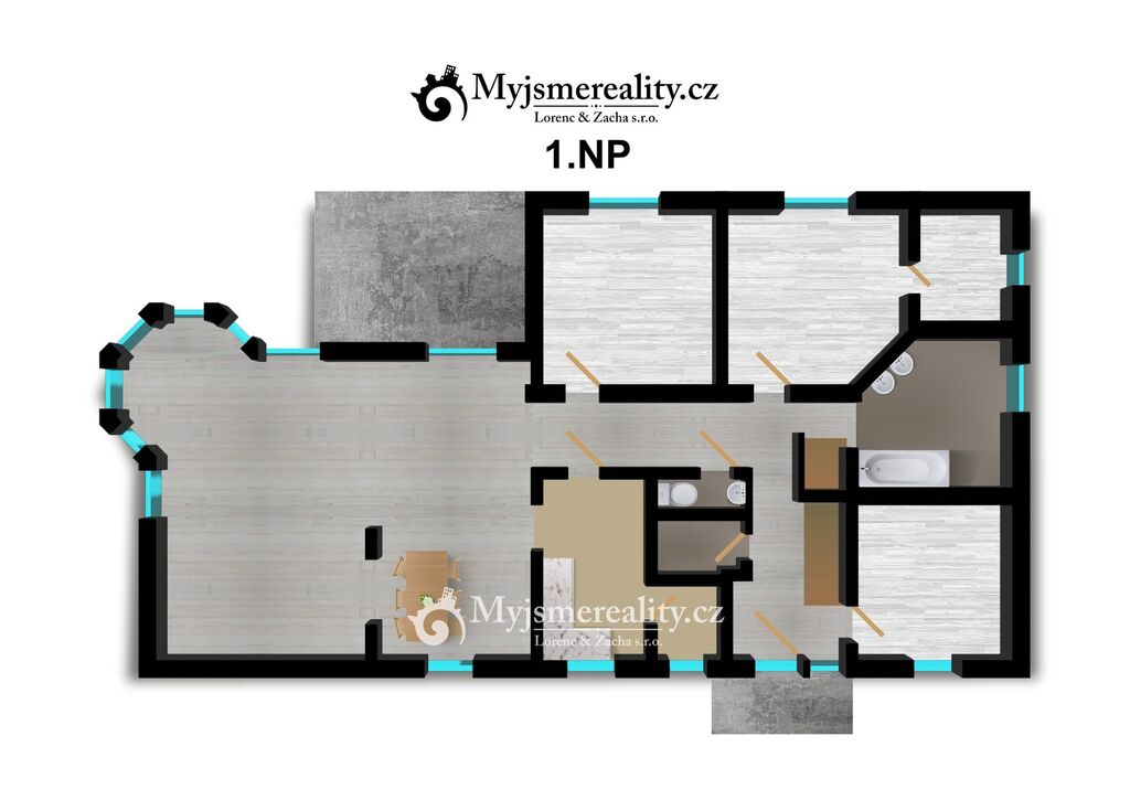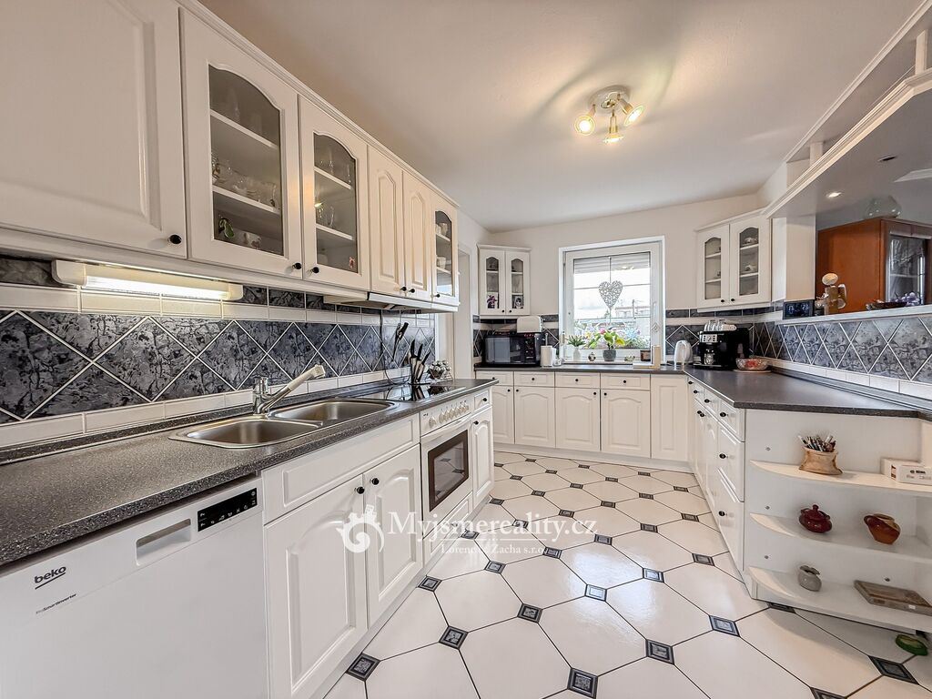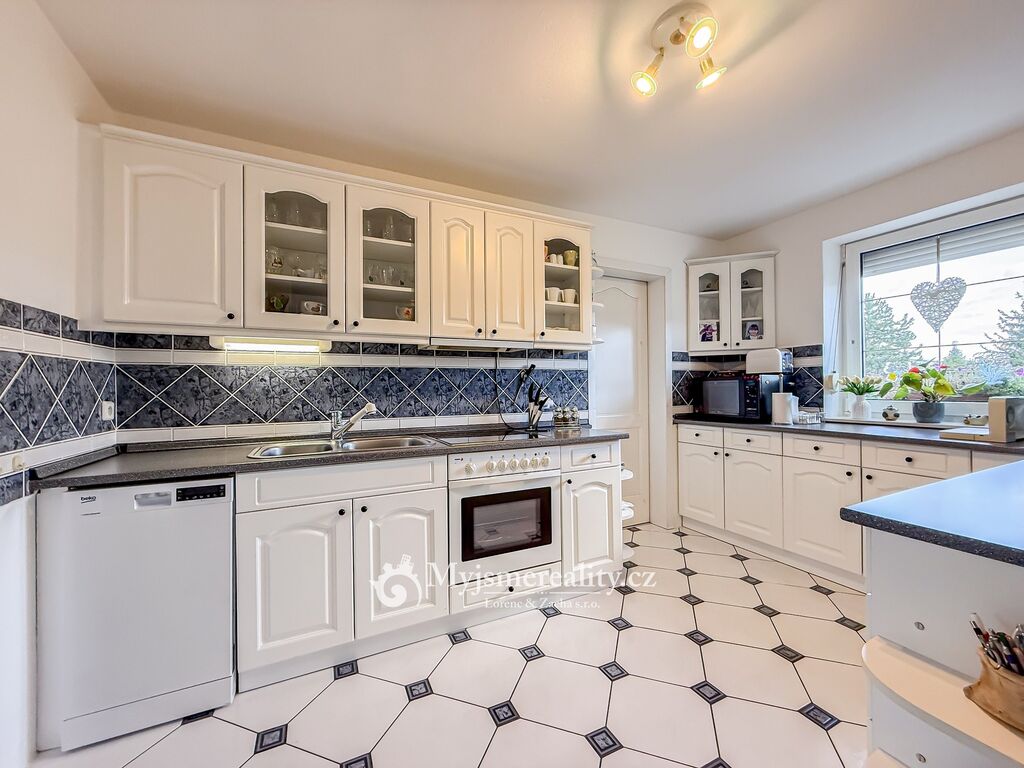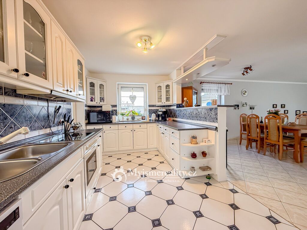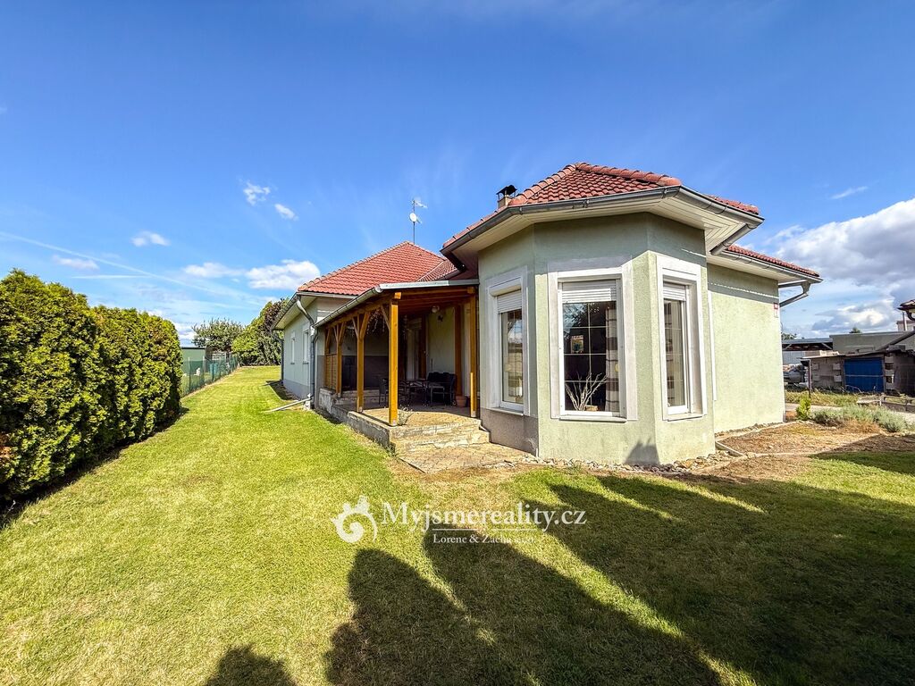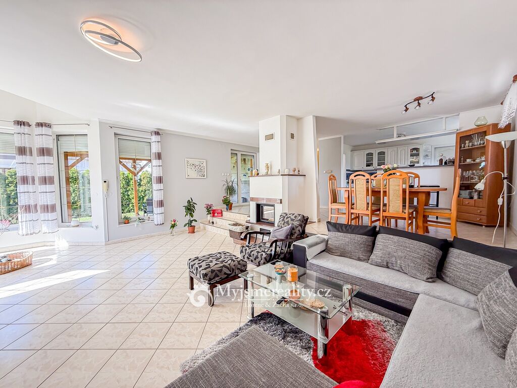 Dispozice domu je 4+kk s celkovou užitnou plochou 161 m2 s možností rozšíření o další dvě ložnice v podkroví a samostatnou koupelnu s toaletou. Celková výměra pozemku, kde se rozprostírá tento krásný dům, je 992 m2 a z větší části zatravněn a osázen okrasnými vzrostlými stromy a křovinami. V zadní části domu se navíc nachází zastřešené a z větší části obestavěné garážové stání pro dvě osobní auta a možnost uložení zahradního nářadí a nábytku.