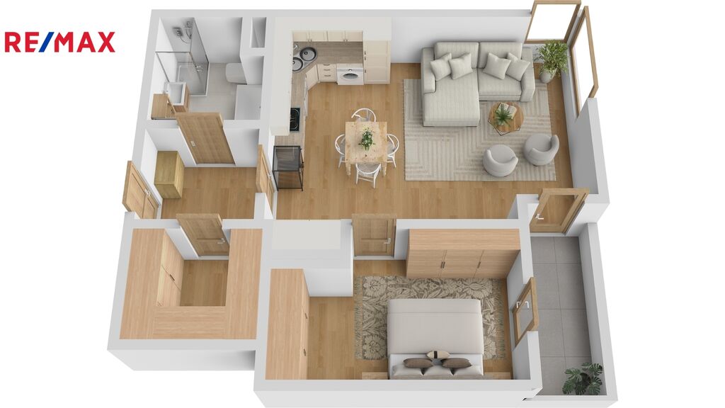 Ve výhradním zastoupení společnosti RE/MAX Future nabízíme k dlouhodobému pronájmu moc hezký byt o celkové ploše 62 m2, který se nachází ve 3. nadzemním podlaží bytového domu v ulici Svatojánská v Hradci Králové. Bytová jednotka s nadstandardními stavebními úpravami poskytuje luxusní bydlení s dostatkem úložných prostor ve všech místnostech. Dispozice bytu je tvořena prostornou vstupní chodbou, obývacím pokojem s kuchyňským koutem a jídelním stolem, ložnicí, šatnou a koupelnou s vanou i sprchovým koutem a toaletou. Moderní kuchyňská linka je vybavena vestavěnými spotřebiči - elektrickou troubou, sklokeramickou deskou, myčkou nádobí, digestoří, lednicí s mrazákem a domácí vinotékou. Dominantou bytu je světlý obývací pokoj, který díky propojení s jídelnou a kuchyní vytváří vzdušnou atmosféru tohoto bydlení. Předností tohoto bydlení je balkon (4,8 m2) přístupný z obou pokojů. Bytová jednotka se nabízí kompletně zařízená. K bytu náleží komora na patře (3 m2) a dvě krytá parkovací stání. Úklid v domě zajišťuje dobře fungující úklidová firma.