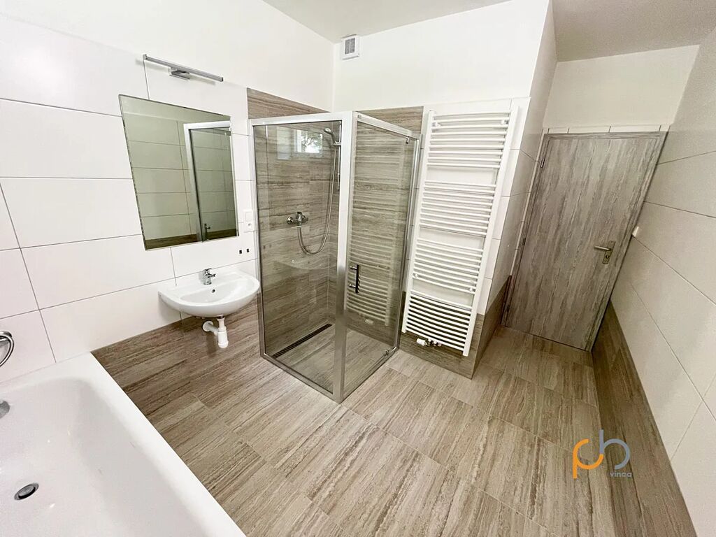 Exkluzivně vám nabízíme k pronájmu krásný slunný byt 2+kk s jižní orientací, 65 m2 z toho byt 55 m2, s balkonem 10 m2 v cihlovém domě. Byt se nachází v 2. nadzemním podlaží a má parkovací stání před domem. Součástí bytu je předsíň s odkládací stěnou ze které je vstup do koupelny s vanou a sprchovým koutem, samostatné WC, podlahová krytina- dlažba, do obývacího pokoje se vstupem na terasu s jižní orientací s prakticky řešeným kuchyňským koutem, myčkou nádobí- Philco, el. varné desky a trouby- Philco, odsavačem par- Elica, podlahová krytina – plovoucí podlaha, dále do ložnice se severní orientací a výhledem do parku. V celém bytě jsou dveře do obložkových zárubní, plastová okna se žaluziemi, elektronický zabezpečovací systém Jablotron, rozvod internetu UVT s bezdrátovým přijímačem na střeše domu, anténí rozvod ze společné antény a zesilovače se 2 přípojkami do každého bytu. Vytápění domu a ohřev teplé užitkové vody je řešeno tepelným čerpadlem, měření spotřeby teplé a studené vody vlastními vodoměry přímo v bytě, rozvody elektroinstalace 25 A s vlastním elektroměrem ve vstupu domu. V docházkové vzdálenosti (300 m) se nachází základní škola, školka, restaurace, obchody s potravinami, řeznictví, pošta, lékař, a přímo za domem park. Energetický štítek kategorie B úsporná budova. K bytu náleží společná kočárkárna v přízemí domu. Nájem 17.000,-- Kč/ měsíc + záloha na energie a služby 2.500,-- Kč/měsíc, vratná kauce tři měsíční nájmy, + poplatek RK ve výši měsíčního nájmu.