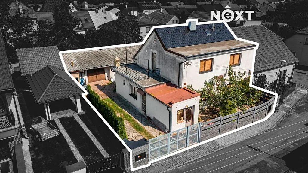 Za domem dvougaráž s dílnou 92 m² vč. koupelny a WC - možné vybudovat samostatnou bytovou jednotku, případně objekt bude před prodejem zbourám a vznikne za domem útulná zahrada. Parkování vedle domu.