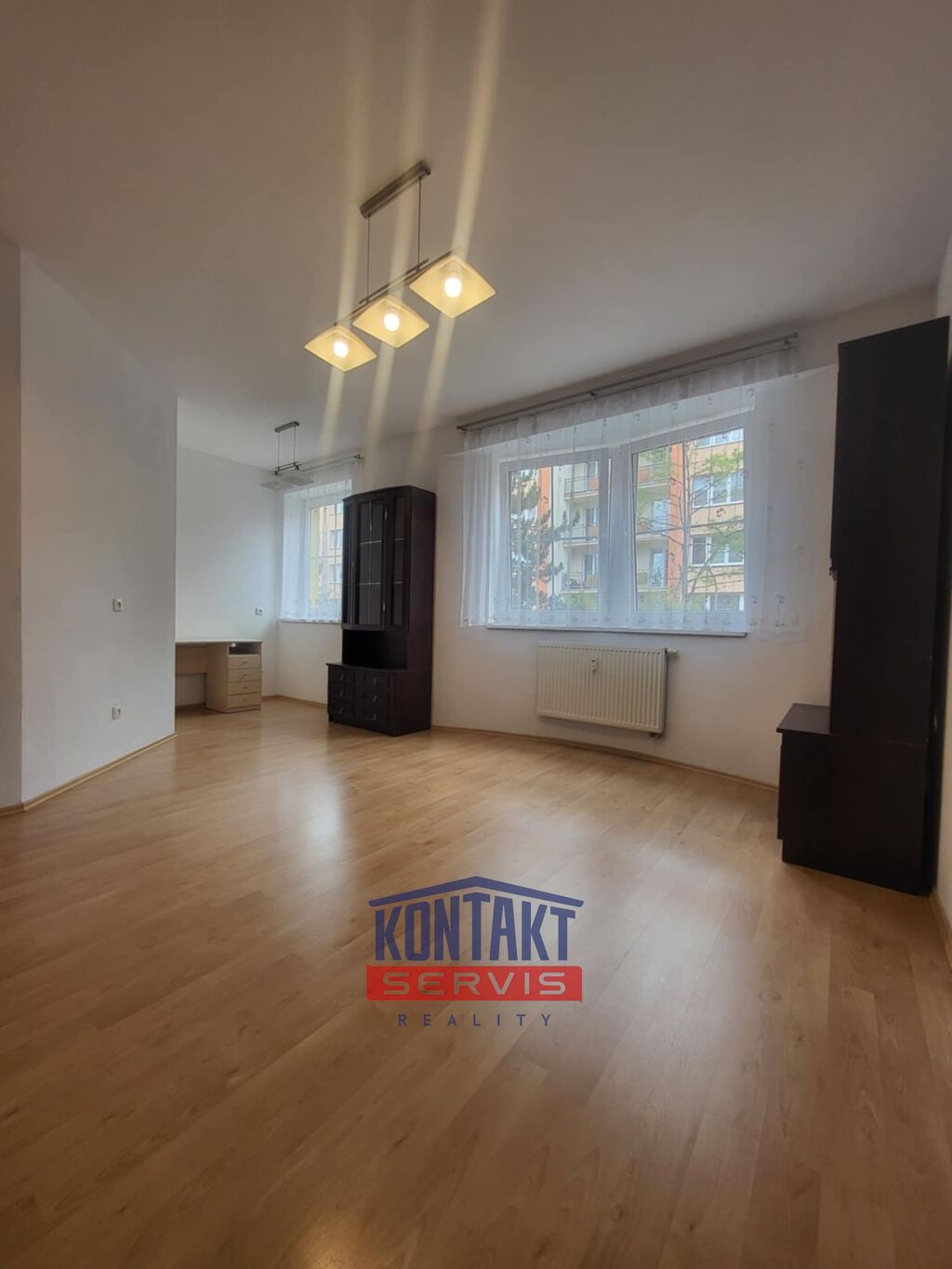 Byt je částečně vybavený a jeho dispozice zahrnuje prostornou vstupní chodbu, koupelnu s vanou a sprchovým koutem a samostatné WC. Dále zde naleznete neprůchozí ložnici a obývací místnost s kuchyňskou linkou, která je vybavena spotřebiči. V prostorné předsíni je umístěna skříň a další vybavení viz foto.