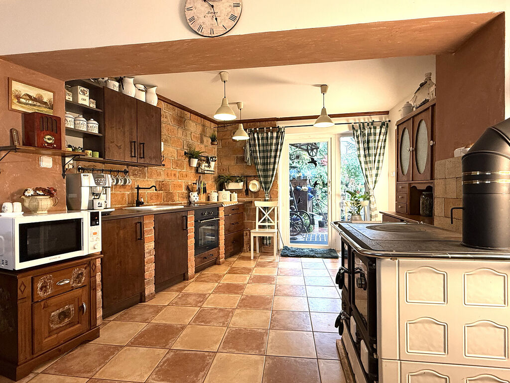 V domě jsou nové elektrické i vodovodní rozvody, podlahové topení (vodní), 2 koupelny, 2 kuchyně, stylová kamna a infrasauna.