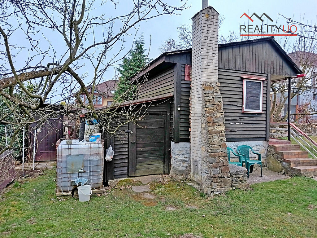 V zadní části pozemku se nachází obytná zahradní chata s číslem evidenčním. Chata je podsklepená.