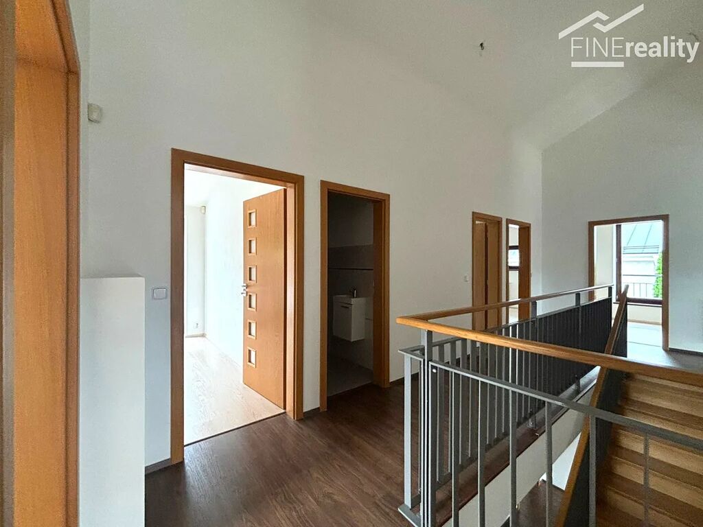 Ve 2. patře se nachází galerie a 4 pokoje, které nabízejí dostatek soukromí pro každého člena rodiny a z nichž jeden je průchozí na terasu. V tomto patře je také samostatná toaleta a druhá koupelna také s vanou i sprchovým koutem, jež je rovněž průchozí na terasu s výhledem na ovocný sad, kde můžete v soukromí relaxovat a užívat si klid.