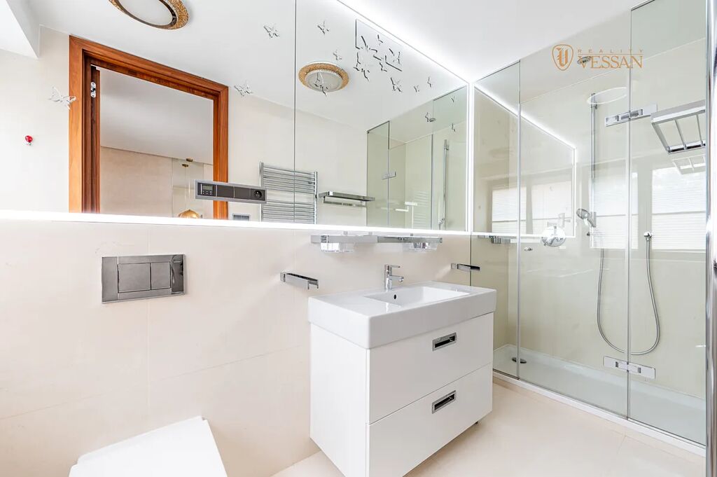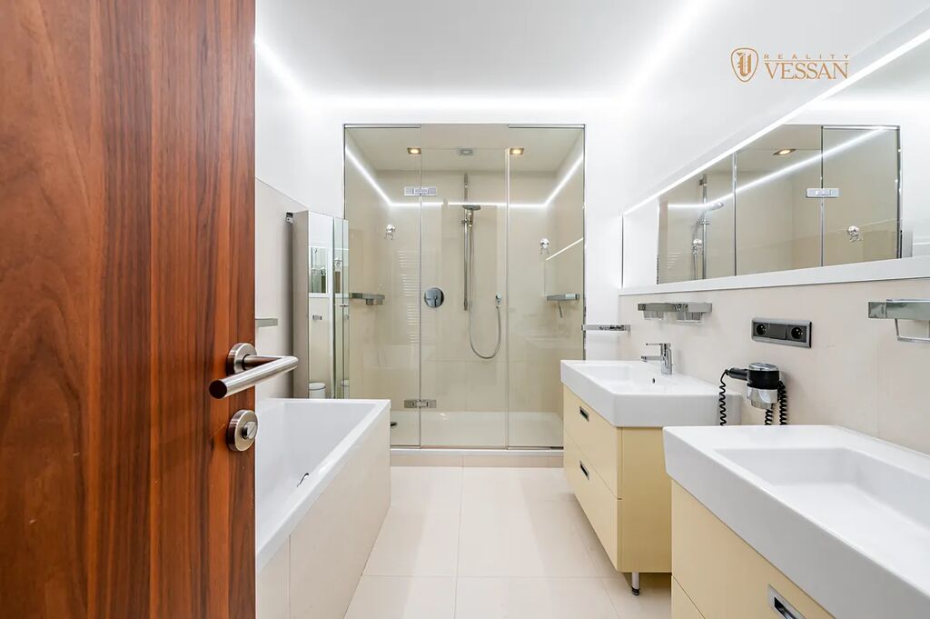 V celém domě je klimatizace a ve všech koupelnách podlahové vytápění.