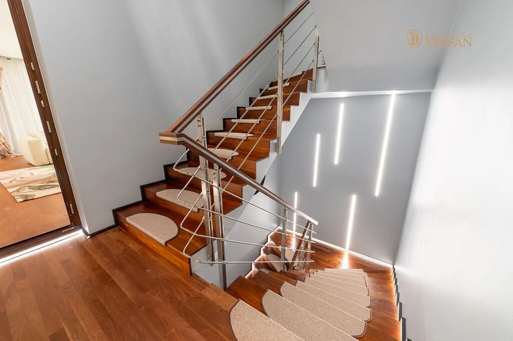 Dům nabízí soukromí, má velmi promyšlenou a praktickou dispozici, prosvětlené místnosti s výhledem do zahrady a z vyšších pater do korun stromů.