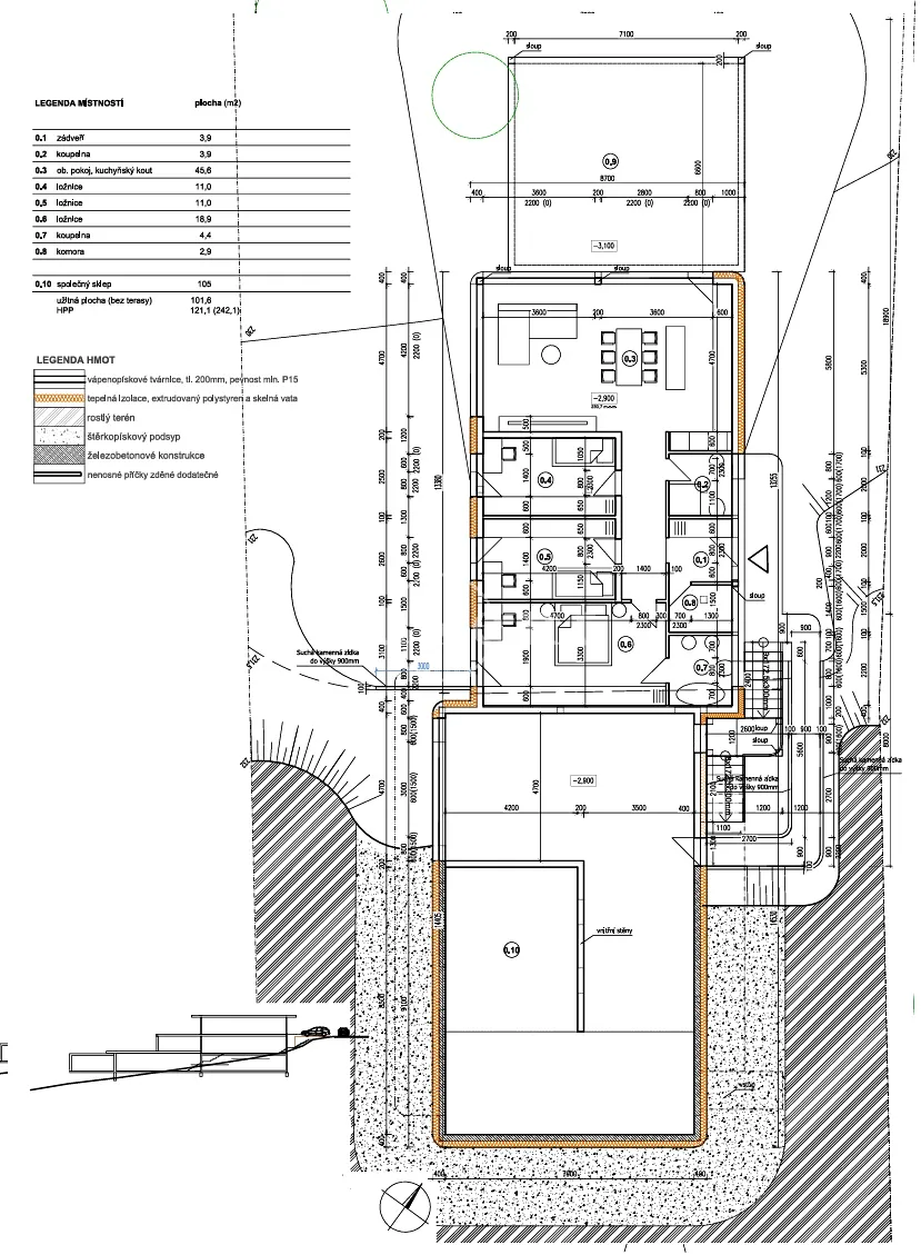 Dle územního plánu se jedná o OB-A čistě obytné, plochy pro bydlení. Vydané stavební povolení umožňuje výstavbu třípodlažní vily (včetně FVE na střeše) o užitné ploše 305 m2, 241 m2 teras a parkování pro 4 auta.