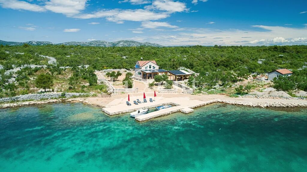 Nabízíme na prodej jedinečný dům přímo u moře, situovaný v první řadě na pláži, v naprostém soukromí a v bezprostředním kontaktu s přírodou. Tato výjimečná nemovitost, harmonicky zasazená do okolní krajiny, je postavena v kombinaci tradičního dalmatského a moderního stylu, čímž vytváří autentickou a zároveň komfortní atmosféru pro život i rekreaci.