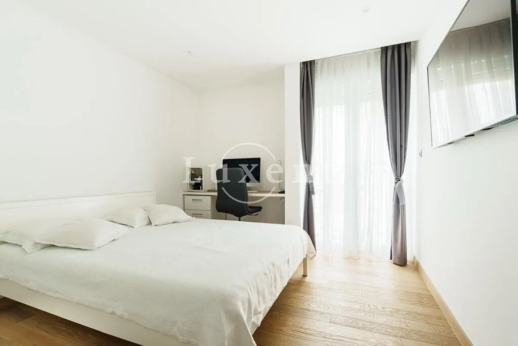 Tento prostorný a kompletně zrekonstruovaný apartmán o velikosti 108 m2 se nachází v sedmém patře moderního bytového domu s výtahem. Je orientován na východ, sever a západ, což zajišťuje dostatek denního světla po celý den. Dispozice zahrnuje vstupní halu, chodbu, hlavní koupelnu, technickou místnost, prádelnu, tři ložnice – přičemž hlavní ložnice má vlastní en-suite koupelnu – dále moderní kuchyni propojenou s jídelnou a obývacím pokojem, odkud je přímý vstup na prostorný balkon s nádherným otevřeným výhledem na moře.