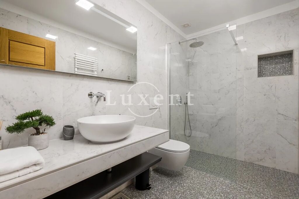 Vila prošla kompletní a precizní rekonstrukcí v roce 2022 a spojuje moderní standardy bydlení s středomořskou atmosférou. Celková obytná plocha činí 463 m2 a je rozložena do tří podlaží. Interiér je členěn do tří samostatných apartmánů, což poskytuje mimořádnou flexibilitu – ideální jak pro rodinné sídlo, tak pro investici s potenciálem pronájmu.