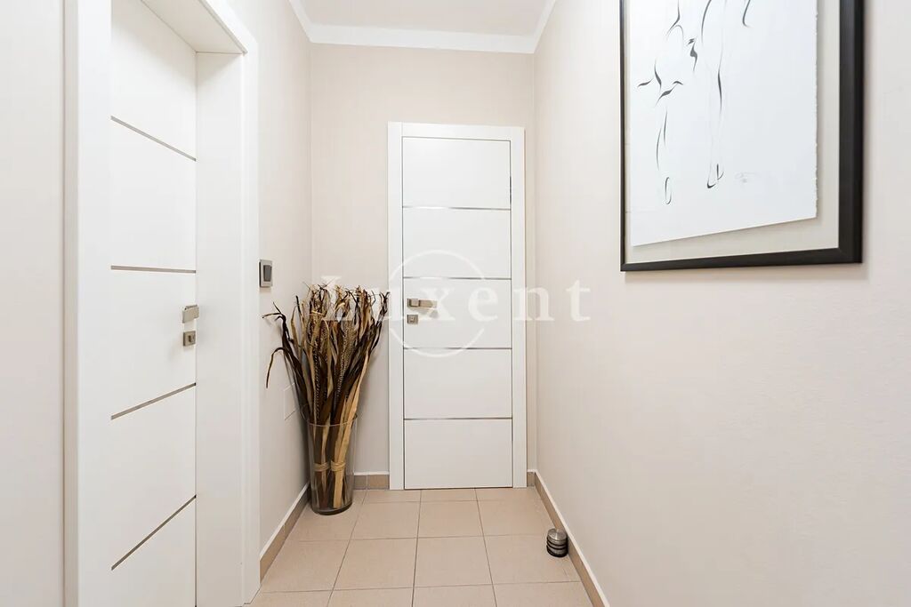 Dispozice zahrnují obývací místnost s rozkládací pohovkou, kuchyňský kout vybavený všemi spotřebiči, ložnici s manželskou postelí, koupelnu s vanou a umyvadlem a oddělenou toaletu. Byt se pronajímá kompletně a nadstandardně vybavený. Vestavěné úložné prostory. Kvalitní postel značky Quantum. Terasa s venkovním posezením a grilem. Součástí koupelny je i pračka a sušička.