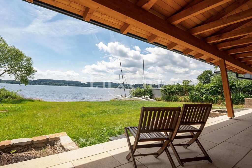 Nabízíme možnost koupě dvou domů na mírně svažitém jižním pozemku přímo na břehu Lipna v jeho klidné západní části – v Jenišově u Horní Plané. Na pozemku o rozloze 1.810 m2 stojí dvě stavby, nově rekonstruovaný rodinný dům a novostavba vedlejší víceúčelové stavby typu bungalovu. Oba domy mají celkovou dispozici 5 + 2x kk a užitnou plochu 186 m2 vč. teras (30 m2) – a odkudkoliv výhled přes jezero na vzdálený zelený neobydlený druhý břeh. V případě zájmu lze stavět třetí dům v odkloněné části pozemku se samostatným vjezdem. Povolena je i výstavba soukromého mola s kotvištěm pro lodi. Předností nabídky je vzácná poloha, možnost další výstavby a kvalitní stávající dvě stavby s moderními technologiemi.