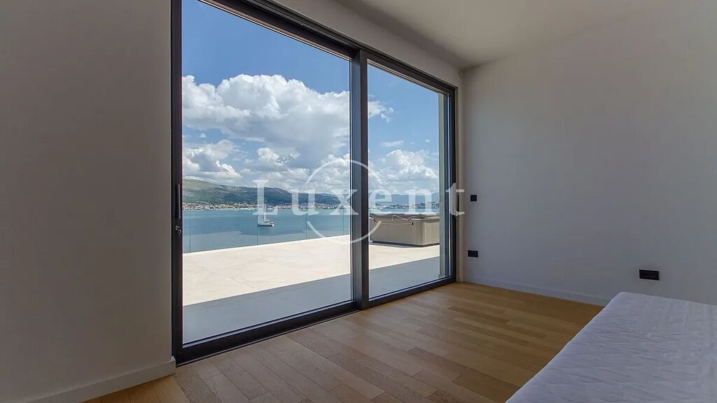 Nabízíme k prodeji nově postavenou moderní vilu v první linii u moře na vyhledávaném ostrově Čiovo, který je spojen mostem s pevninou a jen několik minut jízdy od historického centra Trogiru, zapsaného na seznamu UNESCO. Lokalita je známá svou klidnou atmosférou, krásnými plážemi, azurově čistým mořem a výbornou dostupností díky blízkosti splitského letiště, což z ní činí ideální místo jak pro rekreační bydlení, tak investici.