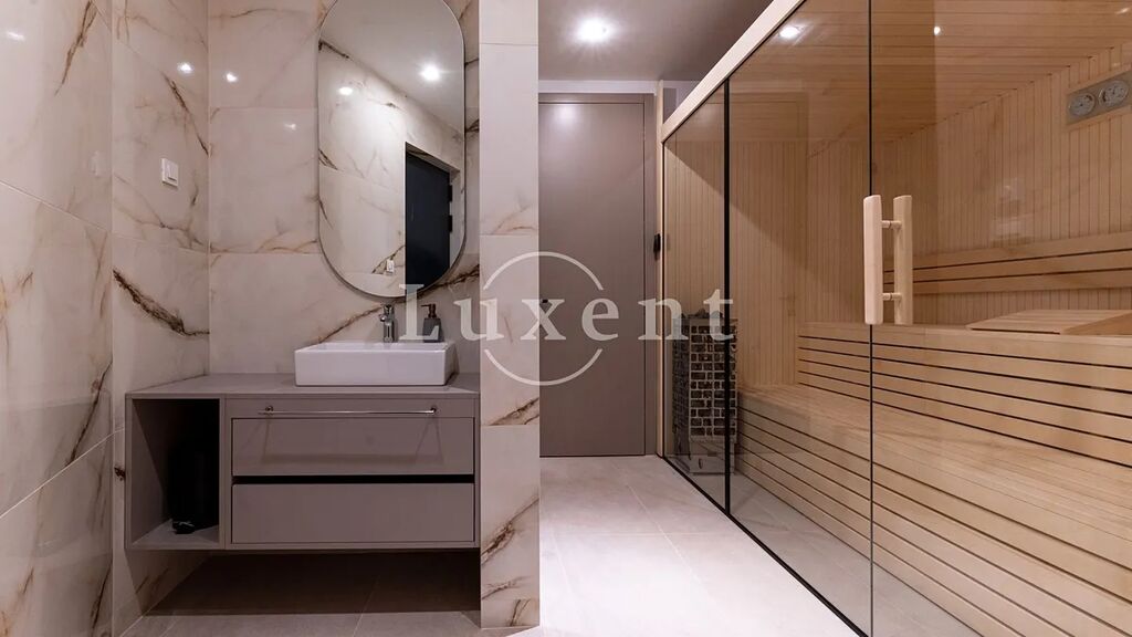 Všechny místnosti ve vile jsou klimatizované a vybavené podlahovým vytápěním, což zajišťuje maximální komfort po celý rok. V suterénu se nachází velkoryse řešený prostor určený pro volný čas a relaxaci – herna s kulečníkem, posilovna a wellness se saunou. Tento prostor je propojen s venkovní terasou pomocí posuvné skleněné stěny, díky čemuž se přirozeně otevírá směrem k bazénu, sluneční terase a venkovní kuchyni s grilem.