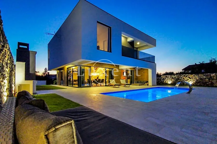 Nabízíme k prodeji nově postavenou moderní vilu s bazénem, situovanou na klidném místě nedaleko vyhledávaného historického města Zadar. Nemovitost se nachází na pozemku o velikosti 602 m² a nabízí celkovou obytnou plochu 230 m², rozloženou do dvou nadzemních podlaží.