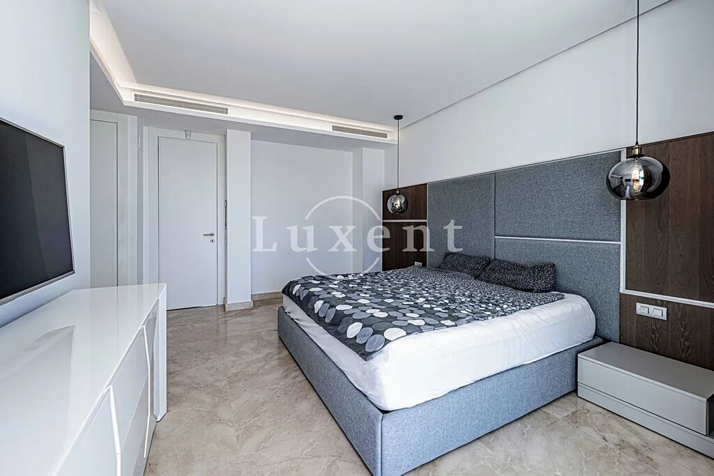 Dům disponuje čtyřmi ložnicemi, třemi koupelnami a jednou toaletou, přičemž čtvrtá ložnice se nachází v suterénu. Hlavní patro nabízí moderní průchozí kuchyni propojenou s obývacím prostorem, který plynule navazuje na terasu se zahradou. V patře naleznete hlavní ložnici s vlastní koupelnou, šatnou a terasou s výhledem na moře. Jsou zde také dvě další ložnice se sdílenou koupelnu. Na střešní terase se nachází solárium, ideální pro relaxaci a zábavu, s panoramatickými výhledy na moře.