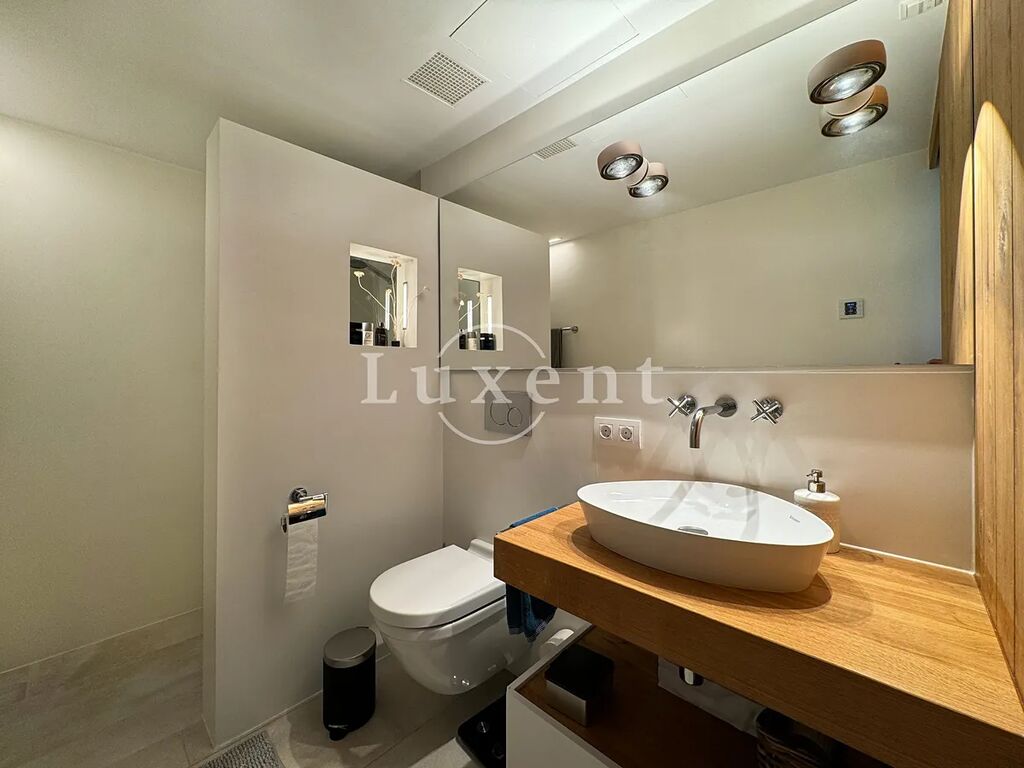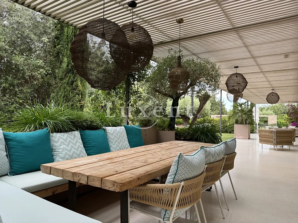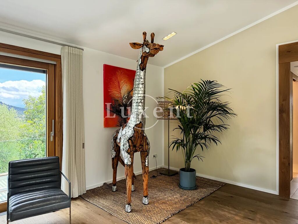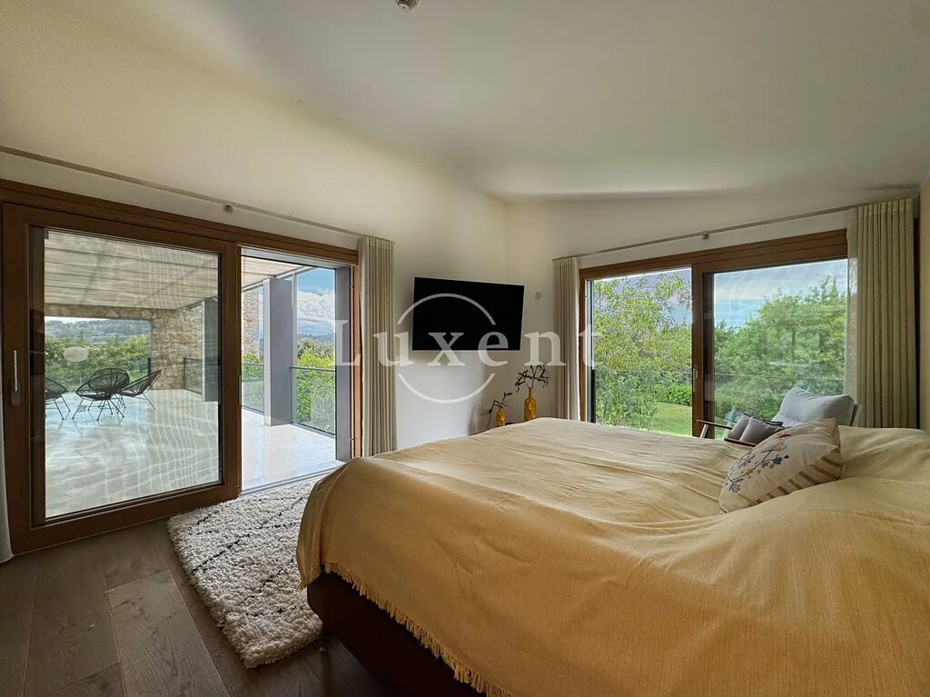 s jídelnou a kuchyní s mini vinotékou. Horní patro zahrnuje hlavní ložnici s vlastní koupelnou a šatnou, další tři ložnice, každá s vlastní koupelnou a vstupem na terasu s překrásnými výhledy na podhoří.