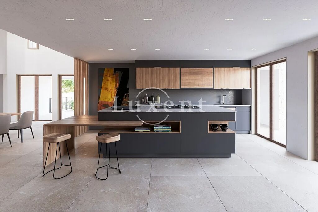 V přízemi vily najdete prostorný obývací pokoj, který vás potěší vysokými stropy a designovým nábytkem. Obývací místnost je průchozí na velkou terasu s bazénem. Najdete zde i venkovní bydlení, které se dá používat například jako dům pro hosty. Moderní kuchyně je plně vybavena pro všechny vaše kulinářské potřeby. Nemovitost se pyšní čtyřmi ložnicemi, z nichž každá má vlastní koupelnu a nabízí tak soukromí pro všechny obyvatele vily. V suterénu jsou další obytné prostory, které lze flexibilně využit dle potřeb majitelé. Kromě toho vila disponuje vinotékou a dostatkem úložných prostor. K nemovitosti náleží také garáž pro tři vozidla a fotovoltaický systém s prostory pro baterie a další elektrocentrálu.