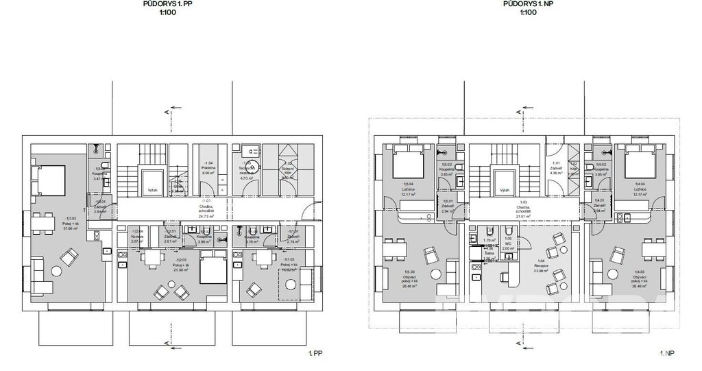 • Podsklepená jednopodlažní budova s obytným podkrovím