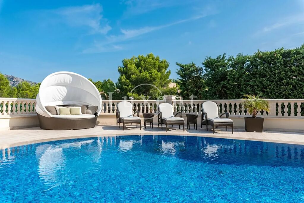 Nabízená nemovitost disponuje šesti ložnicemi a sedmi koupelnami, vířivkou a masivním vyhřívaným bazénem (98 m³) se slanou vodou. Bazén má čistící systém a protiproudovou trysku. V suterénu naleznete prostornou garáž pro tři auta a saunu, v přízemí se nachází prostorný obývací prostor, samostatná jídelna, další obývací pokoj s krbem, prádelna, kuchyně, snídaňová terasa, velká krytá terasa, dvě ložnice s koupelnami a toaleta pro hosty. V prvním patře se nachází další ložnice s koupelnami, herna a terasy s úchvatným výhledem na moře a pohoří Sierra de Tramuntana. Vila je vybavená alarmem, kamerovým systémem a speciálním světelným systémem. Je zde zaveden optický internet. K vile naleží garáž a další parkovací stání před vilou.