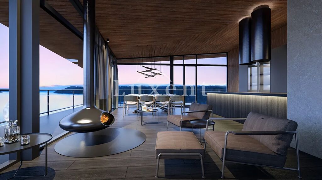 Nabízíme k prodeji luxusní penthouse 4+kk v nové rezidenci Marina Liptov nacházející se v obklopení majestátných vrchů, malebných národních parků a nejdelší slovenské přehrady Liptovská Mara. Byt se nachází ve 4.NP, rozprostírá se po celém podlaží a disponuje obytnou plochou 164 m2 a celkovou užitnou plochou 277 m2. Rozložení bytu nabízí prostorný obývací pokoj s kuchyňským koutem a jídelním prostorem, tři ložnice, dvě koupelny a samostatnou toaletu. Kolem celého bytu se rozprostírá lodžie/terasa 114 m2 s jedinečným panoramatickým výhledem do okolí. Dům má bezbariérový přístup a výtah, ke každému bytu náleží parkovací stání a sklepní kóje, které jsou již zahrnuty v ceně.