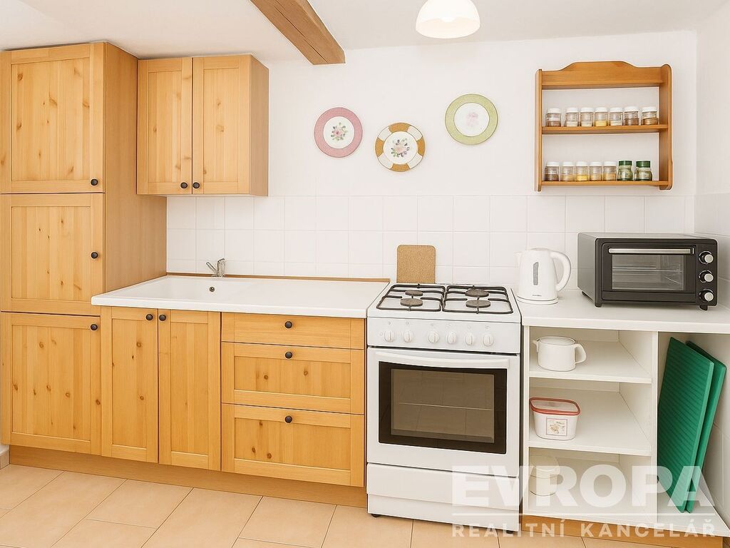 Dispozice obytné části (67,6 m²) zahrnuje obytnou kuchyň s obývacím prostorem, tři pokoje, koupelnu se sprchovým koutem a WC a prostornou chodbu. Atmosféru domu doplňuje menší sklípek (5,9 m²), ideální pro uchování potravin či vína. Na obytnou část navazuje užitková plocha (71,9 m²) – stodola, dílna, sklady a zahradní místnost, které poskytují zázemí pro kutilství, zahradničení nebo uskladnění dřeva. Velkou předností je půda, vhodná k vestavbě dalšího obytného prostoru.
