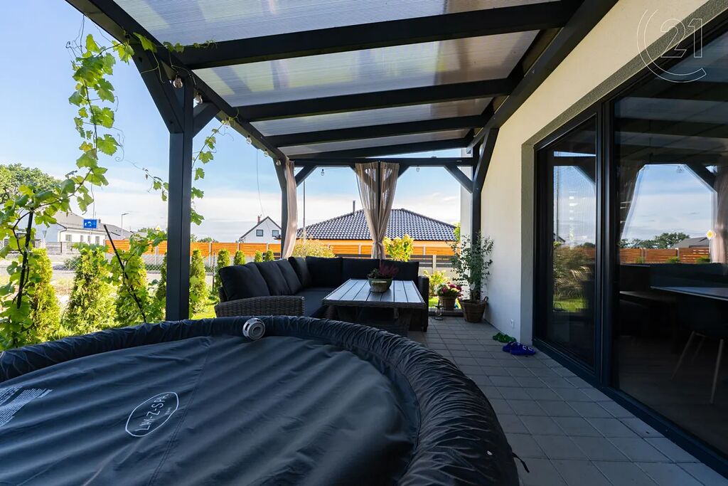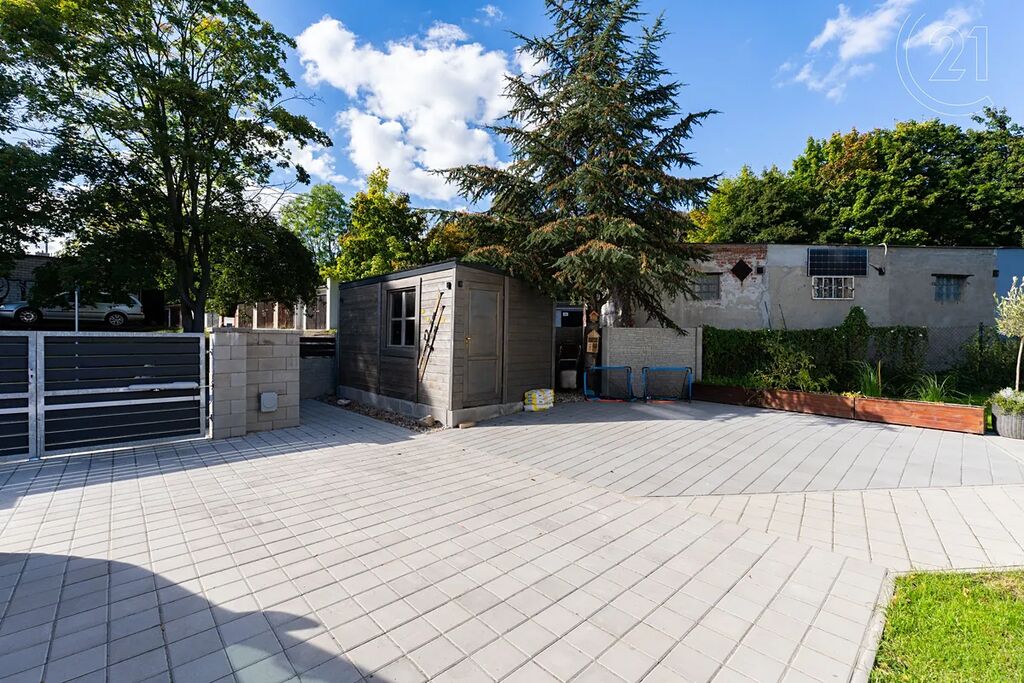 Na pozemku o výměře 740 m² se nachází parkovací stání, prostorná pergola s terasou, zahradní domek a také dětské hřiště. Zahrada nabízí dostatek místa jak pro odpočinek, tak pro rodinný život.