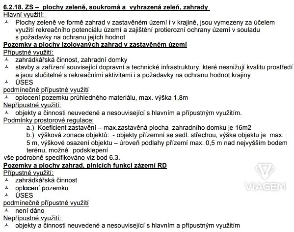 Možno zastavět chatou o půdorysu 16 m2 (jednopodlažní + podkroví + podsklepení).