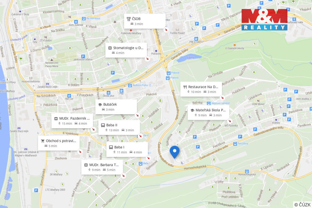 Hledáte pohodlné bydlení v klidné části Prahy s výbornou dostupností do centra? Nabízíme k pronájmu moderní a světlý byt 2+kk o ploše 44 m² s balkonem, který se nachází v kompletně zrekonstruovaném a udržovaném domě v oblíbené lokalitě Praha 4 – Modřany, ulice Semická. Byt je částečně zařízený – k dispozici je kuchyňská linka, praktické úložné skříně a nová pračka. Dispozice nabízí obývací pokoj s kuchyňským koutem, ložnici, koupelnu a vstupní chodbu. Balkon je ideální pro ranní kávu či večerní relax. V těsné blízkosti domu je zastávka autobusu Platónova, odkud se během pár minut dostanete na tramvajové nebo vlakové spojení (Modřany, Modřanská škola). Do centra Prahy se pohodlně dostanete přibližně do 25 minut. Okolí nabízí cyklostezku podél Vltavy, Freestyle Park Modřany, minigolf, venkovní posilovny, Modřanskou rokli i zookoutek v Chuchelském háji. K nastěhování ihned. Nájem: + 4 200 Kč (poplatky+ energie).
