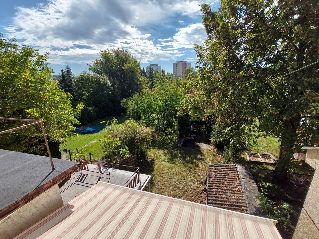 Dům nabízí dvě prostorné terasy, z nichž se otevírá výhled do poklidné zahradní zeleně. Jedna z teras je chráněná stahovací markýzou. Zahrada s ovocnými stromy a skleníkem má samostatný vjezd. Parkování je možné v garáži pod terasou i přímo na zahradě, kde je dostatek místa pro další vozy. Pod terasou se nachází také malá dílna, kterou lze využít i jiným způsobem.