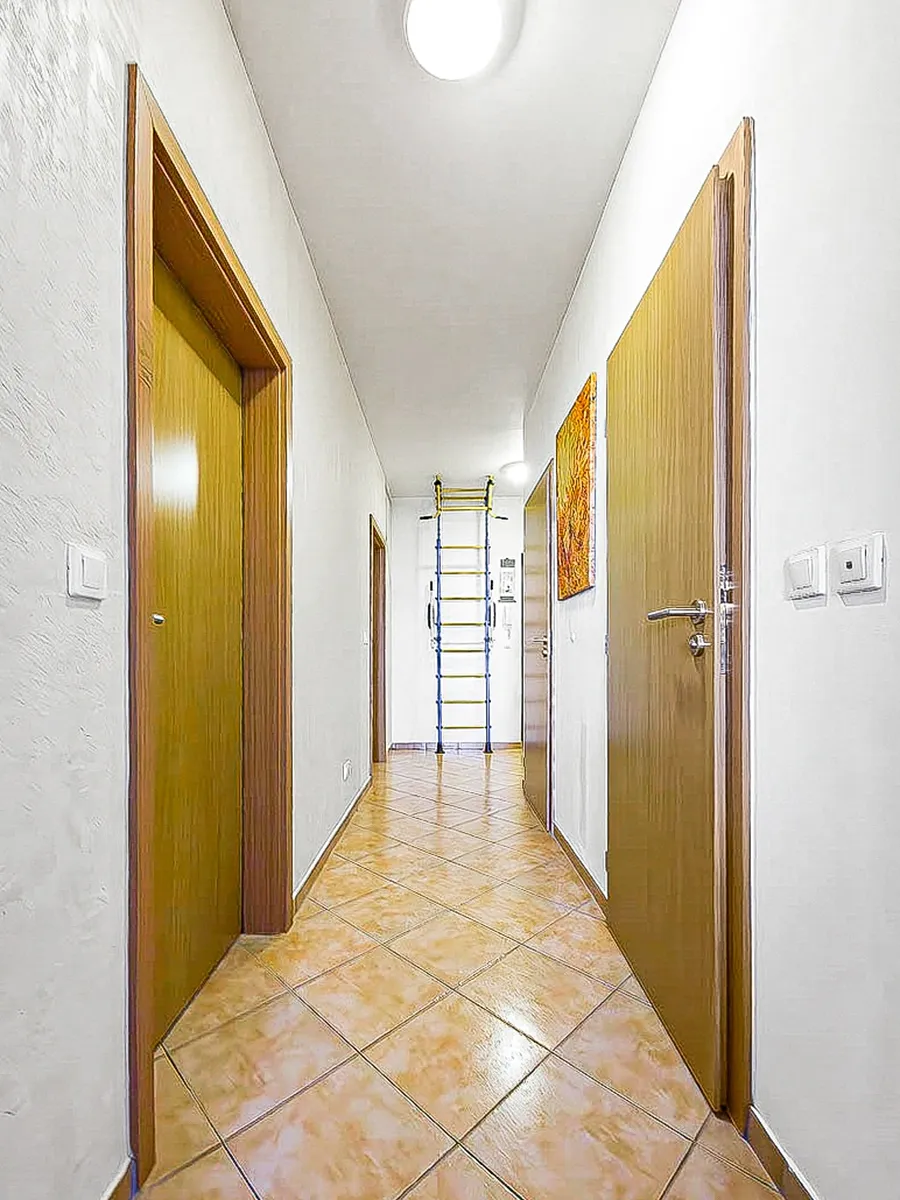 Součástí prodeje je také soukromé parkovací stání v garáži a sklepní kóje, které zvyšují komfort a praktičnost bydlení.