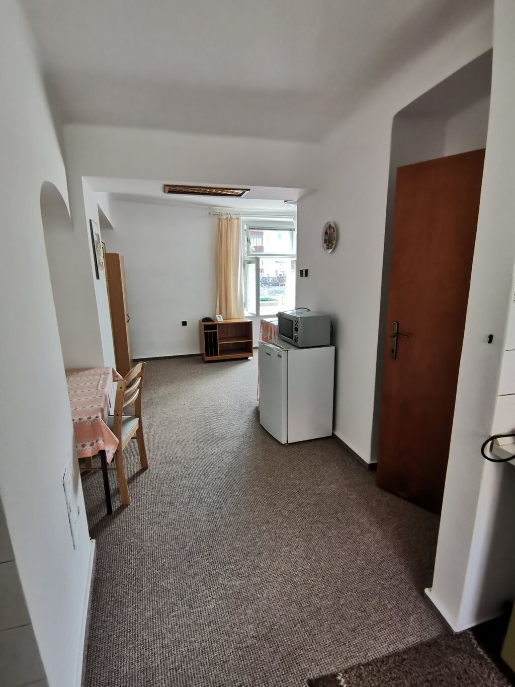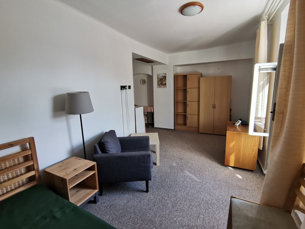 Nabízíme pronájem pěkného a udržovaného bytu 1+kk ve zděném rodinném domě v centru Sušice. Byt s celkovou obytnou plochou 20m2 se nachází v přízemí se samostatným vchodem z chodby domu. Bytová jednotka se skládá z předsíně, obývacího pokoje s kuchyňským koutem (kuchyňská linka s dvouplotýnkovým vařičem), sprchovým koutem a WC (2,5m2). Okna dřevěná se žaluziemi, podlahová krytina keramická dlažba, v obývacím prostoru položen nový koberec. Vytápění je řešeno elektrickými topnými tělesy z přírodního mramorového kamene s nastavitelnou časovou regulací, které díky svým schopnostem a termostatům udržují požadovanou teplotu s minimálními energetickými náklady. Byt má samostatné odečtové měřiče elektřiny a vody. Platby spojené s užíváním: 5.000,-Kč nájem, + 200,-Kč záloha na vodné, stočné + el. dle odečtového elektroměru (1/3 = poměrné části cca 3.000,-Kč/měs.). Vratná kauce ve výši 10.000,-Kč. Dům se nachází v klidné, tiché ulici, cca 5 min. od náměstí.