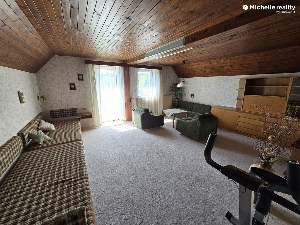 Michelle reality Vám exkluzivně nabízí k prodeji samostatně stojící rodinný dům situovaný v klidné lokalitě Hlásná Třebáň s jediným sousedem a naprostým soukromím. Dům se nachází na prostorném, pečlivě udržovaném pozemku o celkové výměře 1 014 m², kterým protéká vlastní potok. Zahrada je ideálním místem pro relaxaci, s posezením pod stromy a bazénem (v současnosti nefunkční, určený k servisu). Součástí pozemku je také zabudovaná nádoba na dešťovou vodu o objemu cca 10 m³, vhodná k zalévání zahrady. Dům má podlahovou plochu cca 230 m² a je dispozičně řešen jako jednogenerační: Dispozice domu: Přízemí: bytová jednotka 3+1, 1. Patro: bytová jednotka 2+1 s balkonem a nádherným výhledem do krajiny, 1. podzemní podlaží: sklep, technická místnost, garáž pro 1 auto, dílna. Dům je napojen na městskou kanalizaci a městský vodovod, zároveň má i vlastní studnu. Vytápění zajišťuje elektrický kotel, zároveň je k dispozici i funkční kotel na tuhá paliva. Tato nemovitost nabízí perfektní kombinaci klidného venkovského života a dostupnosti občanské vybavenosti. Ideální pro rodinné nebo dvougenerační bydlení (po stavební úpravě), případně pro rekreační využití. Nádherné místo pro plnohodnotný život. Vřele doporučuji prohlídku. Ev. číslo: 650991.