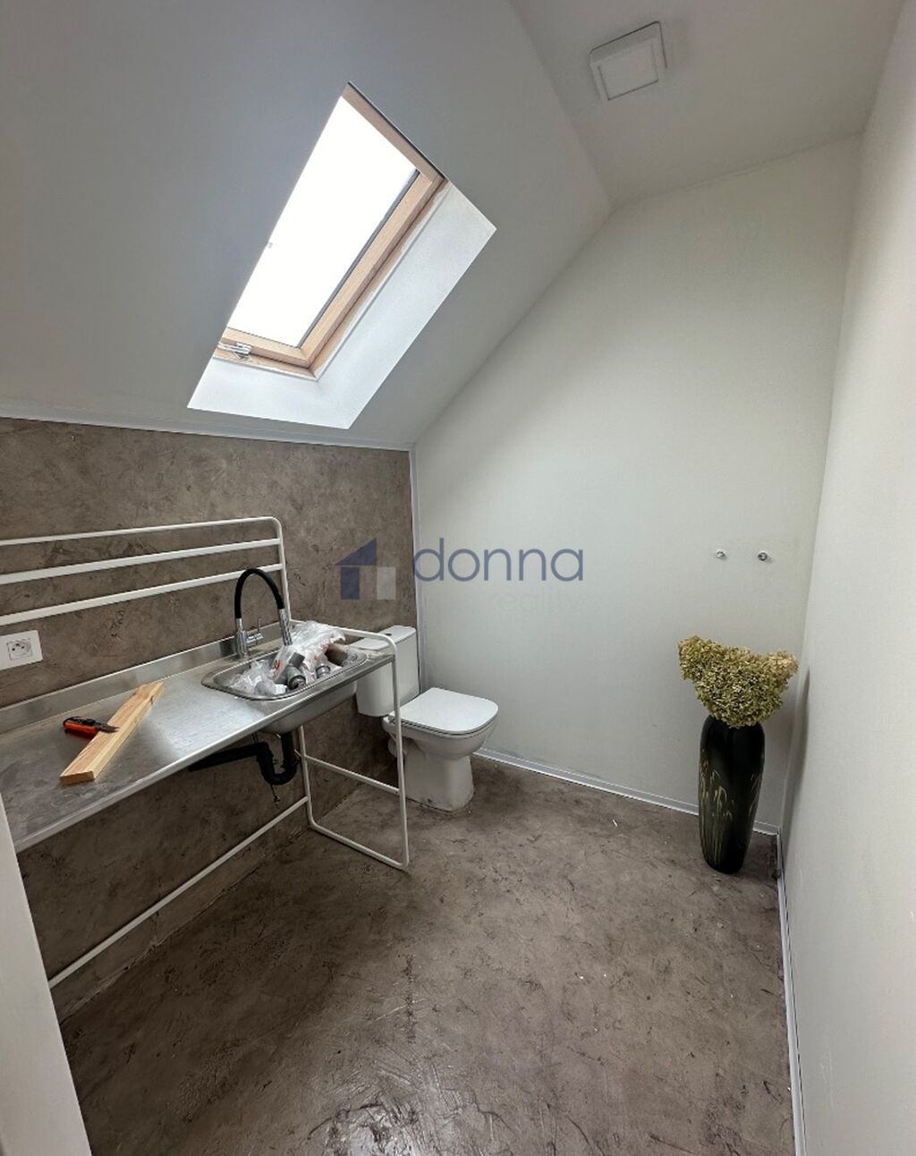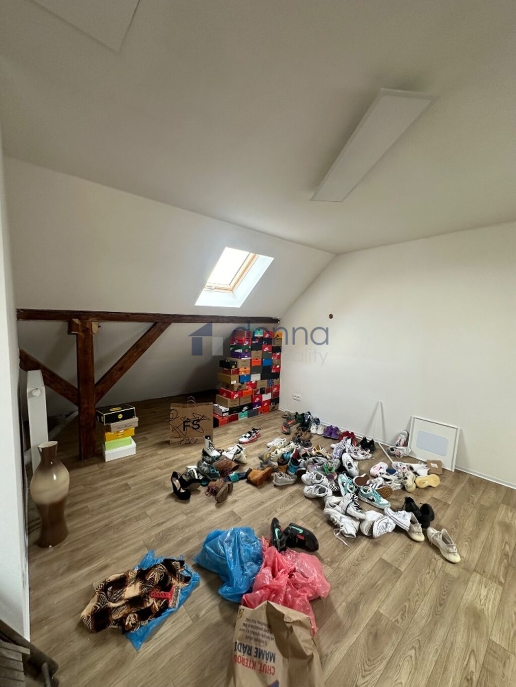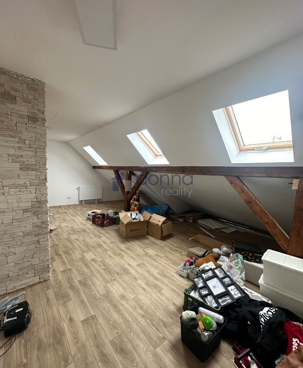 Podkroví: technická místnost s wc a dřezem, velký otevřený prostor, který je nevybavený, možno použít na cokoliv.