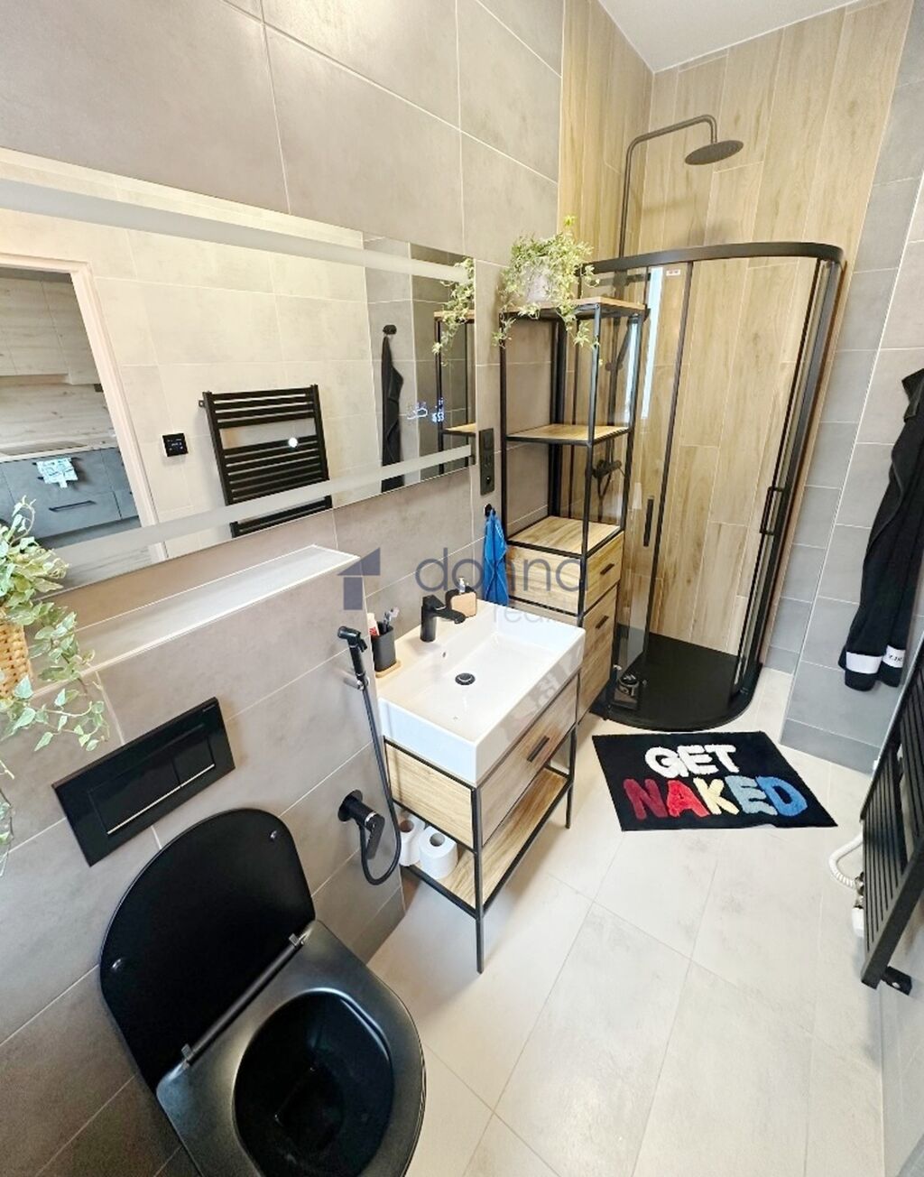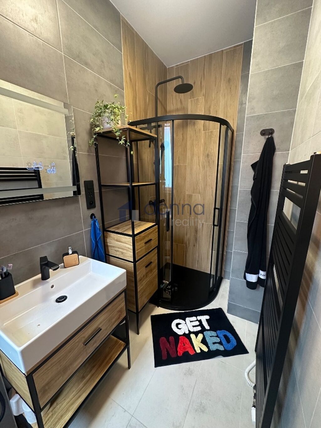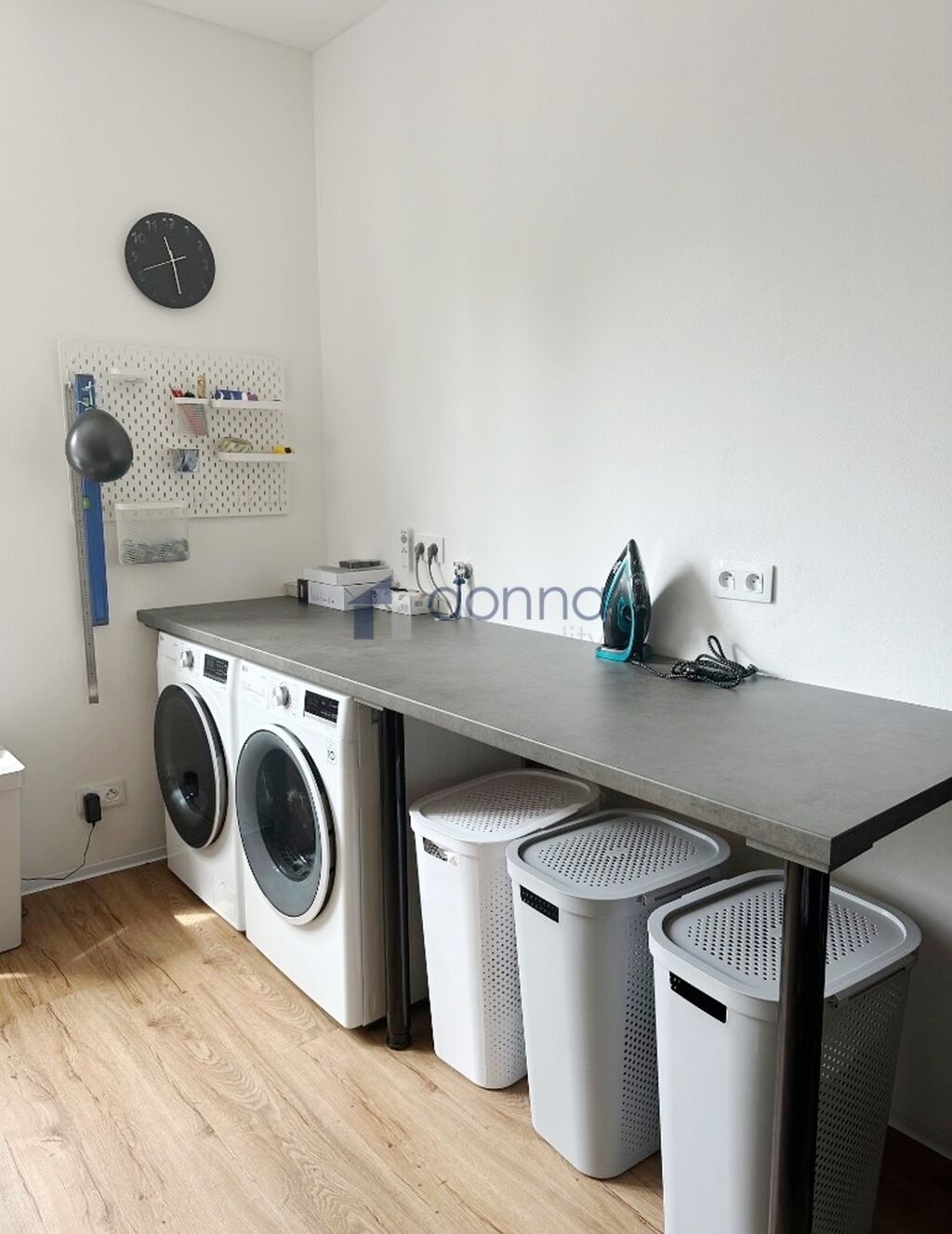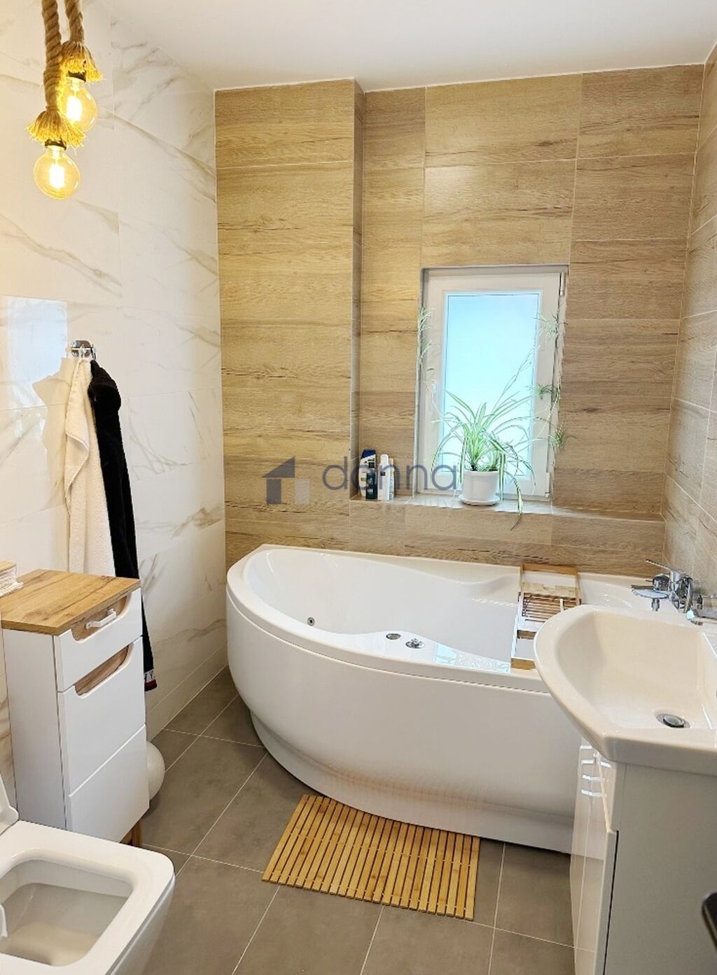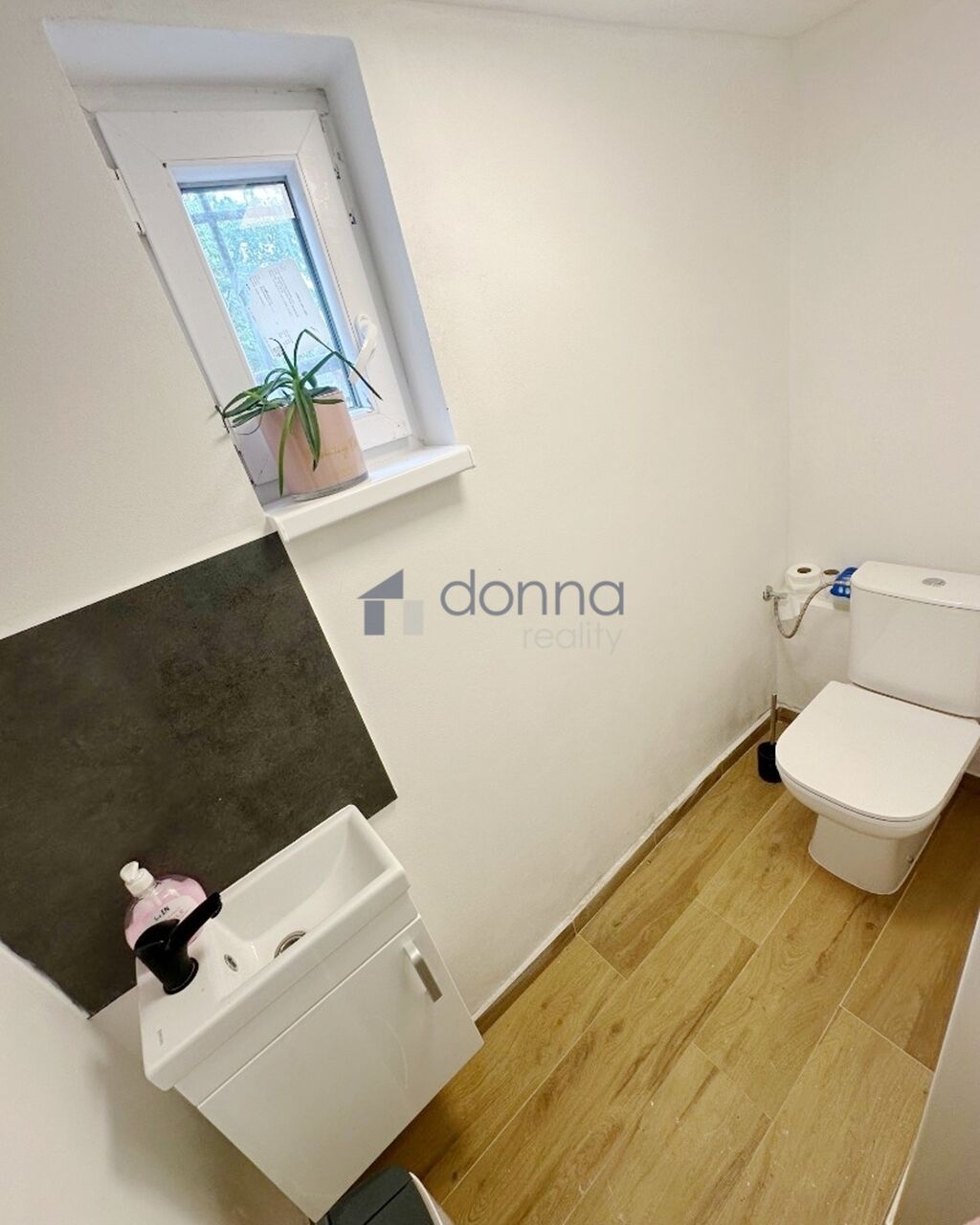 Přízemí: technická místnost (kotel, bojler, pračka, sušička, skříně s čistícími prostředky, zásoby jídla a 3 tyče na zimní bundy), samostatné wc, kuchyň, obývací pokoj, koupelna se sprchovým koutem a toaletou.