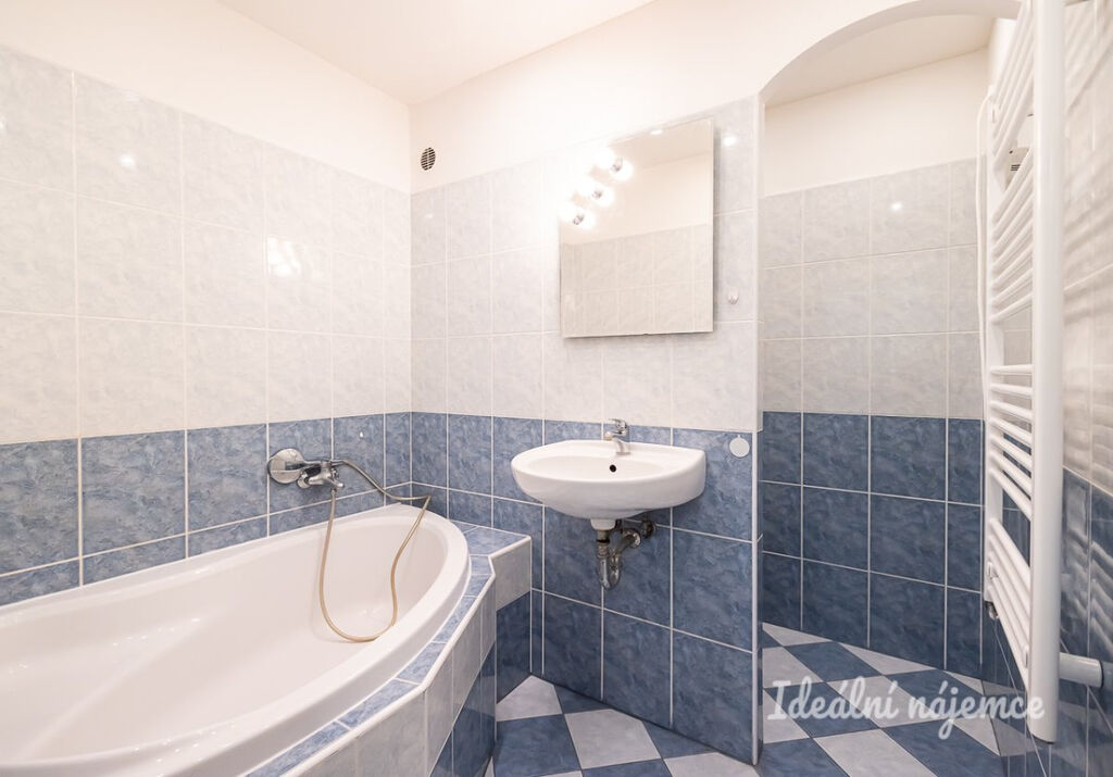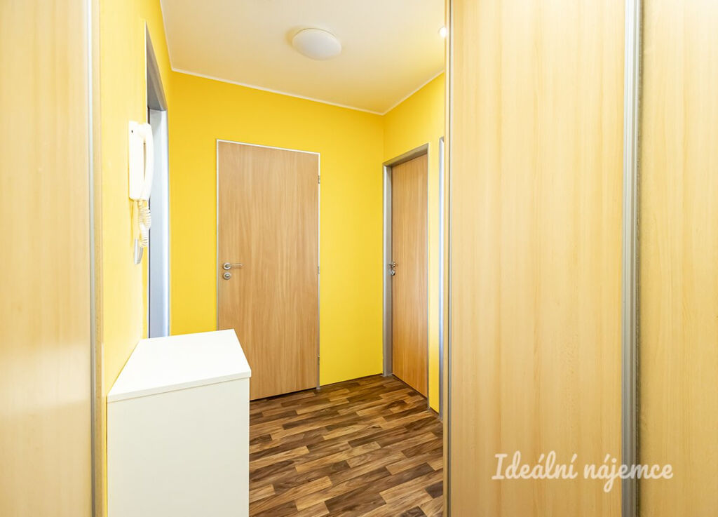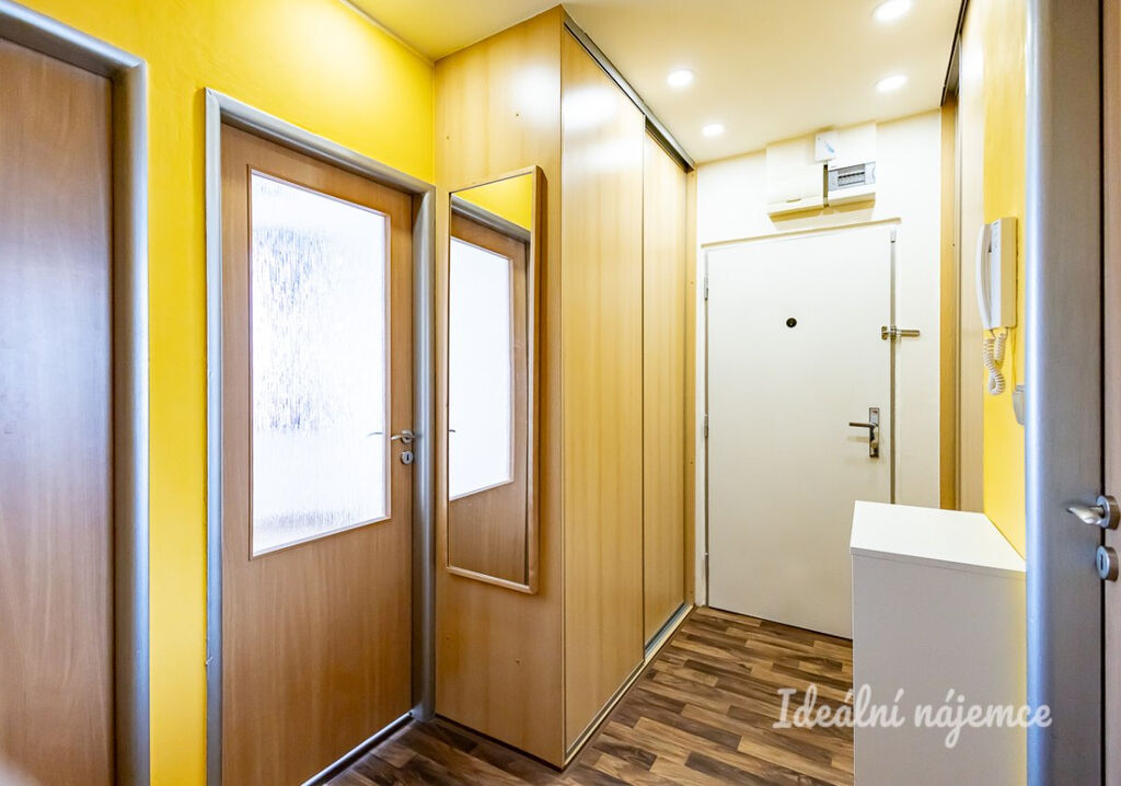 Nabízí se částečně vybavený. V prakticky navržené kuchyni najdeme vestavěné spotřebiče - pračku, lednici, myčku, elektrickou troubu, indukční varnou desku s digestoří a mikrovlnnou troubu. V otevřené obývací části najdeme rozkládací pohovku s konferenčním stolkem, komody a vestavěné úložné prostory. Součástí ložnice je manželská postel s úložnými prostory a vestavěná šatní skříň. Druhý pokoj se nabízí nezařízený, je tak možné jej využít jako dětský pokoj či pracovnu. V koupelně nalezneme vanu, umyvadlo se skříňkou a částečně oddělenou toaletu. Předsíň nabízí další úložné prostory ve formě vestavěné šatní skříně a botník.