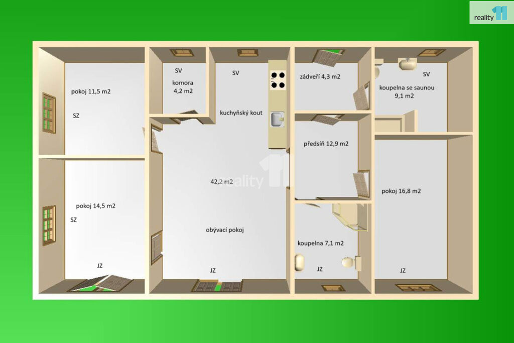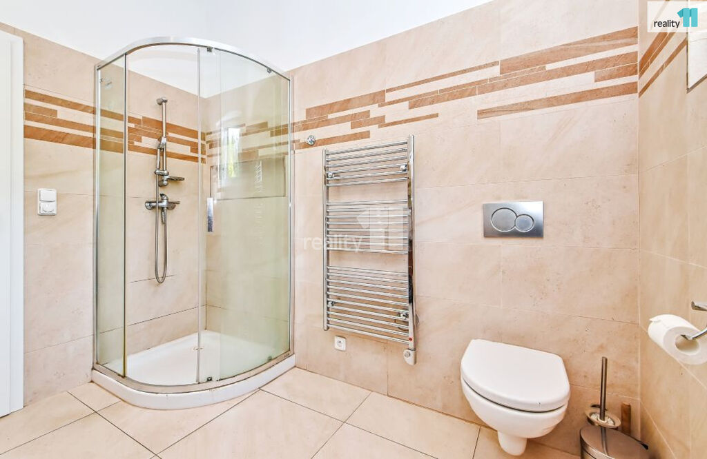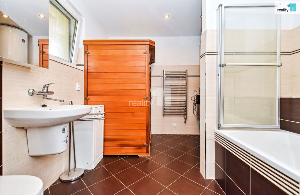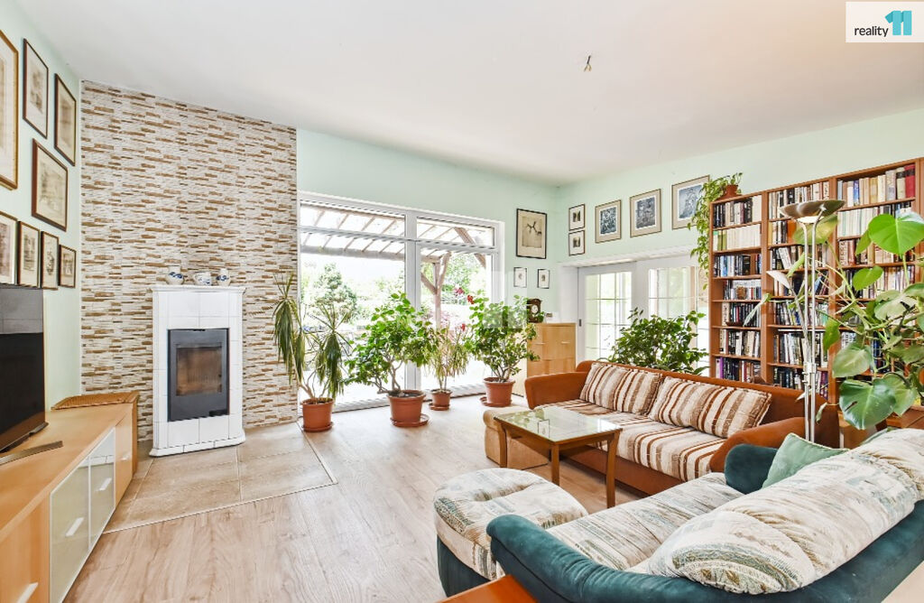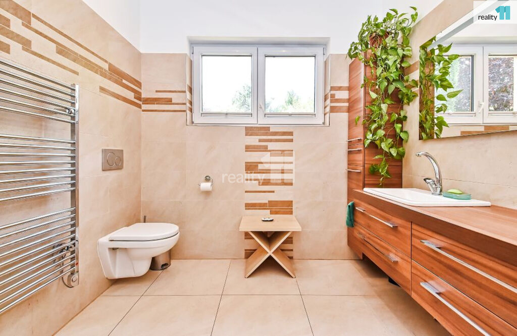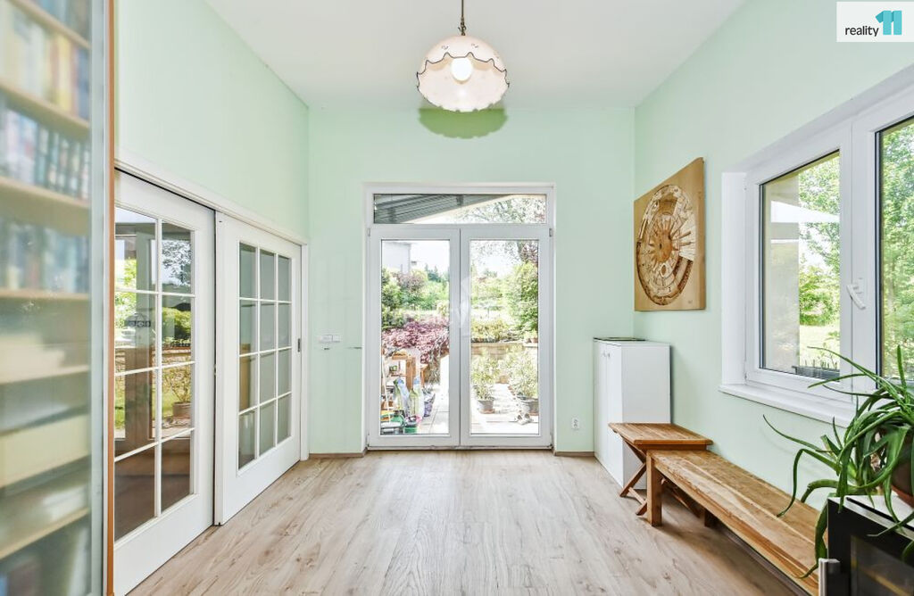 Prodáme přízemní rodinný dům na rohové parcele v obci Tehov - místní samostatné části Hačalka nedaleko Říčan u Prahy Tato lokalita je dopravně velmi klidná, mimo hlavní komunikaci. Dům o dispozici 4+kk s velkou terasou a udržovanou zahradou se nachází na konci slepé ulice, ve které lze parkovat a zároveň v těsném sousedství lesa. Mezi zahradou a lesem je dle územního plánu biokoridor, který zajišťuje do budoucna nemožnost další zástavby. Celková plocha pozemku je 857 m², z toho zastavěná plocha činí 149 m², přičemž 123 m² je plocha bytu a zbývající plocha je venkovní terasa. Dům je ve velmi dobrém stavu, dostavěn byl v roce 2015. Je napojen na elektro, vodovod a veřejnou kanalizaci. Stavba je cihlová, jednopodlažní, s tepelnou izolací obvodových stěn, střechy i základů. Střecha pultová, plechová. Okna i prosklené dveře jsou plastové, zasklení provedeno izolačním dvojsklem. Vytápění v obývacím pokoji, koupelnách a předsíni je řešeno elektrickým podlahovým vytápěním. Tři místnosti jsou vybaveny elektrickými přímotopy na noční proud, nicméně podlahové vytápění je dostačující pro vytápění celého obytného prostoru. Dalším doplňkovým zdrojem tepla jsou kachlová kamna na dřevo v obývacím pokoji. Dům je vybaven zabudovaným centrálním vysavačem. V jedné ze dvou koupelen je vana a elektrická sauna, ve druhé sprchový kout. Obývací pokoj je orientován na JZ, okna vedou do zahrady a z pokoje lze vycházet posuvným francouzským oknem na terasu a do zahrady. Podlahy v místnostech jsou vinylové, v předsíni a koupelnách je dlažba. V domě je zaveden internet (wifi), je instalována anténa a satelit. Terasa na jižní straně domu je opatřena dlažbou a dřevěnou pergolou. K domu je přistavěn dřevník a v rohu zahrady zahradní domek. Dům a terasu obklopuje mírně svažitá zahrada. Zahrada a bezprostřední blízkost Říčanského lesa je ideální jak pro rodiny s dětmi, tak i pro milovníky domácích mazlíčků. Přímo v lokalitě Hačalka je pro nejmenší k dispozici Mikešova mateřská školka s bohatým zaměřením (Montessori club, angličtina, sporty, hudba a divadlo). Pro zájemce jsou v docházkové vzdálenosti i dvě alternativní dětské skupiny v přírodě. V obci Tehov je dvoutřídní mateřská škola s běžnou a lesní třídou. Dále základní škola pro 1. stupeň, druhý stupeň je ve vedlejších Světicích. Pro děti je k dispozici velký venkovní sportovní areál, včetně dětského hřiště. V Tehově je prodejna se smíšeným zbožím, tři opravny aut, dvě truhlářství, pivnice, knihovna, kostel a aktivně zde působí občanské sdružení a spolky. Další vybavenost je v sousední obci Světice Pro děti zejména další mateřská škola, základní škola a různé kroužky a oddíl judo. Tehov je v současnosti obsloužen autobusovými linkami PID. Autobusy zajišťují spojení do Světic a Říčan. Cesta vlakem ze stanice Světice přes Říčany na Hlavní nádraží v Praze trvá cca 35 minut. Ev. číslo: 27805.